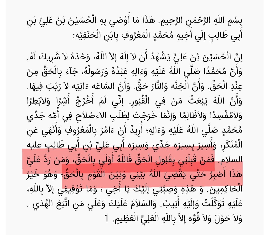۱۱- توضیح فرضیه قیام و جهاد تا شهادت به کار میبرند، همخوانی ندارد! در مواجهه با حر در محدوده ذوحسم هم وقتی راه پس به سوی مکه و راه پیش به سمت کوفه را بسته میبیند، صراحتا میگوید که قصد جنگ ندارد و اگر راهی به سوی کوفه یا برگشت به مکه نیست، راهی باز کنند که او و خاندانش از عراق
