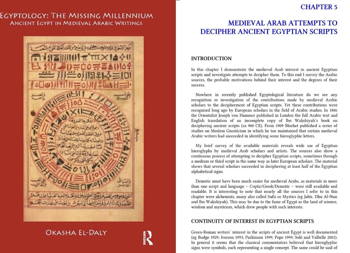 الهيروغليفية، مما يؤكد أن العرب هم السباقون فى فك رموز الهيروغليفية، وأن شامبليون استغل ما حصلت عليه الحملة الفرنسية من مخطوطات مصرية عربية، واستغلها فى استكمال فك رموز الهيروغليفية.