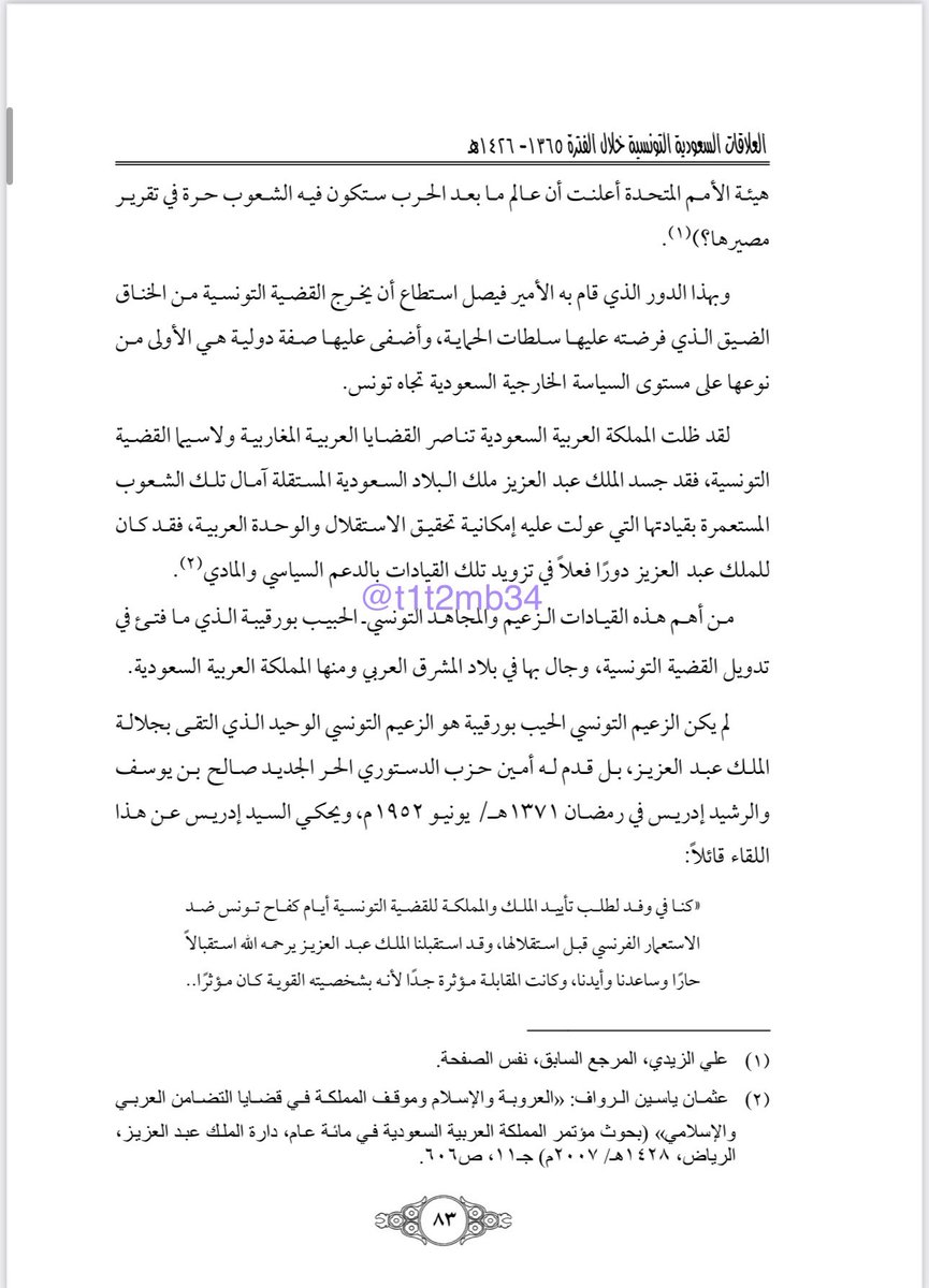 في ١ ديسمبر ١٩٤٣م، قام #الملك_فيصل وأخيه #الملك_خالد ( حينما كانا اميرين ) بزيارة إلى #تونس قادمين إليها من #امريكا ، وكانت تونس في تلك الفترة تشهد ظروف حرجة مشحونة بالخوف والذعر وحالة الانتقام من قبل #فرنسا ،،