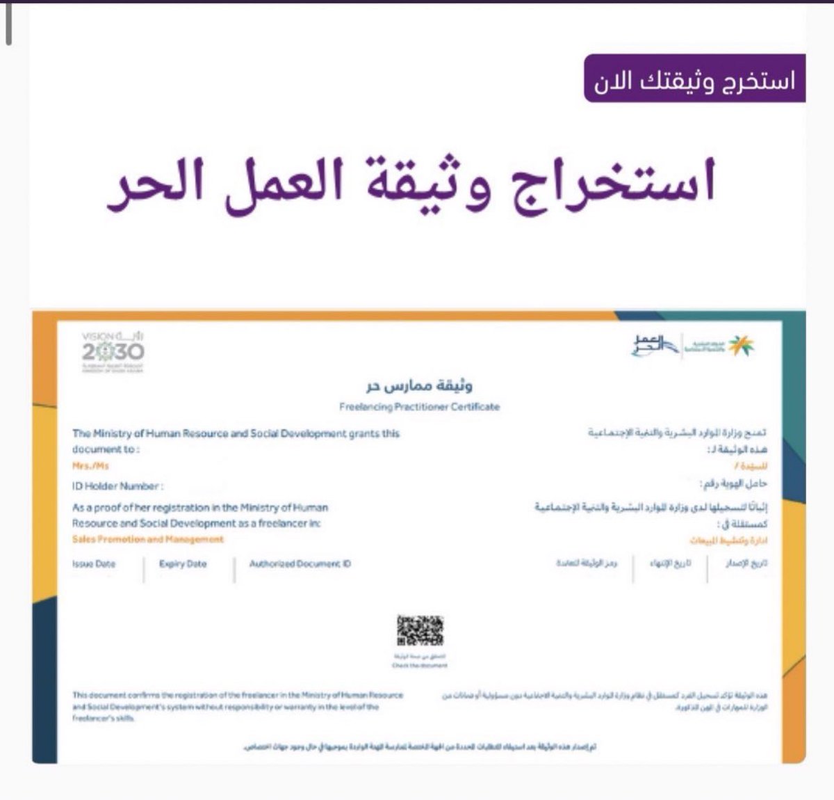 الان بامكانك استخراج وثيقة العمل الحر بشكل رسمي ونظامي⛔️