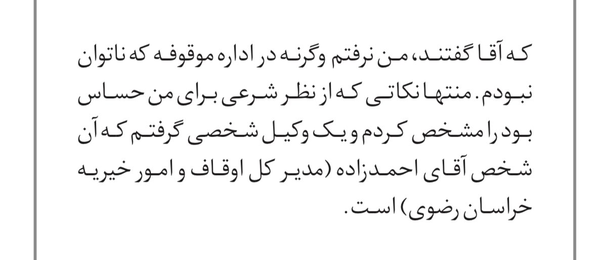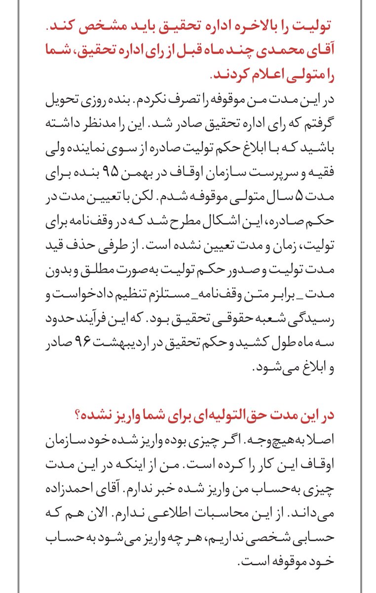 ۸. نکته مصاحبه اینست که با اعتراض آقای #علم_الهدی تولیت موقوفه گوهرشاد بصورت مادام العمر به شخص ایشان واگذار شده است.