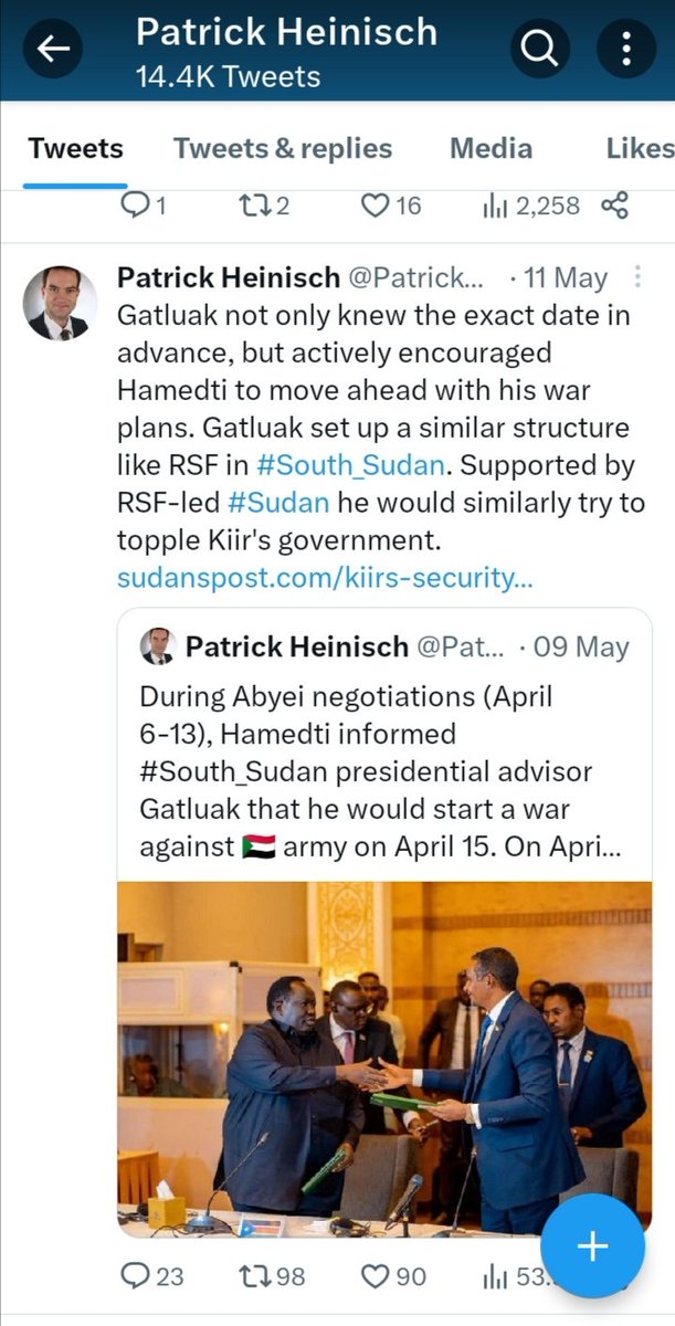 واحد من الناس القريبين جدا" للمليشيا للآن و من أول يوم (١٥ أبريل) أكد إنو " حميدتي @GeneralDagllo لا يفهم سياسة و دخل نفسو في حرب خاسرة"