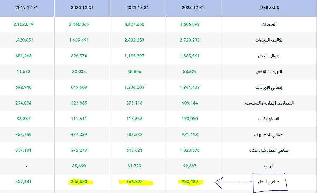 متوسط النمو بصافي الربح السنوي ~ 70٪ اخر 3 سنوات