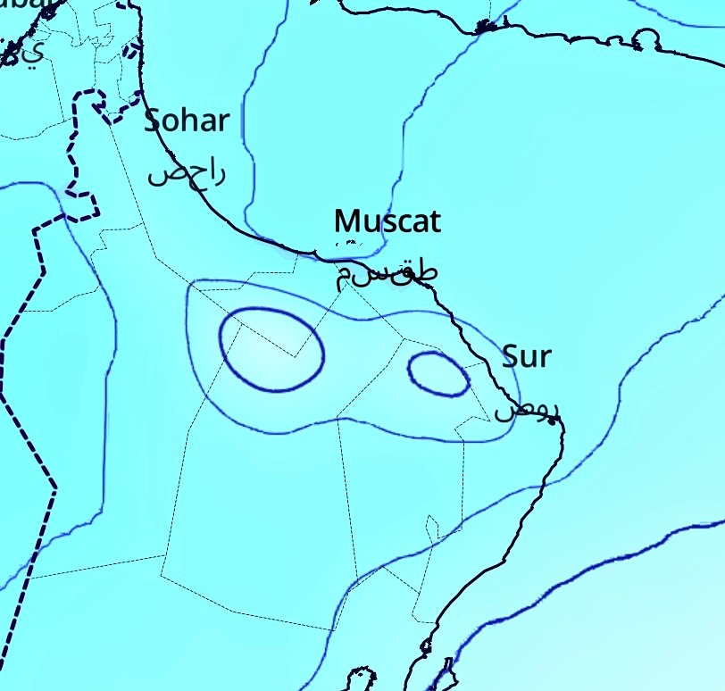التي تعمل على تبخر الرطوبة المصطدمة بالجبال ورفعها الى اعلى وزيادة بخار الماء المتصاعد من بحر عمان وكلما ارتفعت درجة الحرارة كان افضل ويفضل ان تكون اكثر من 38درجة