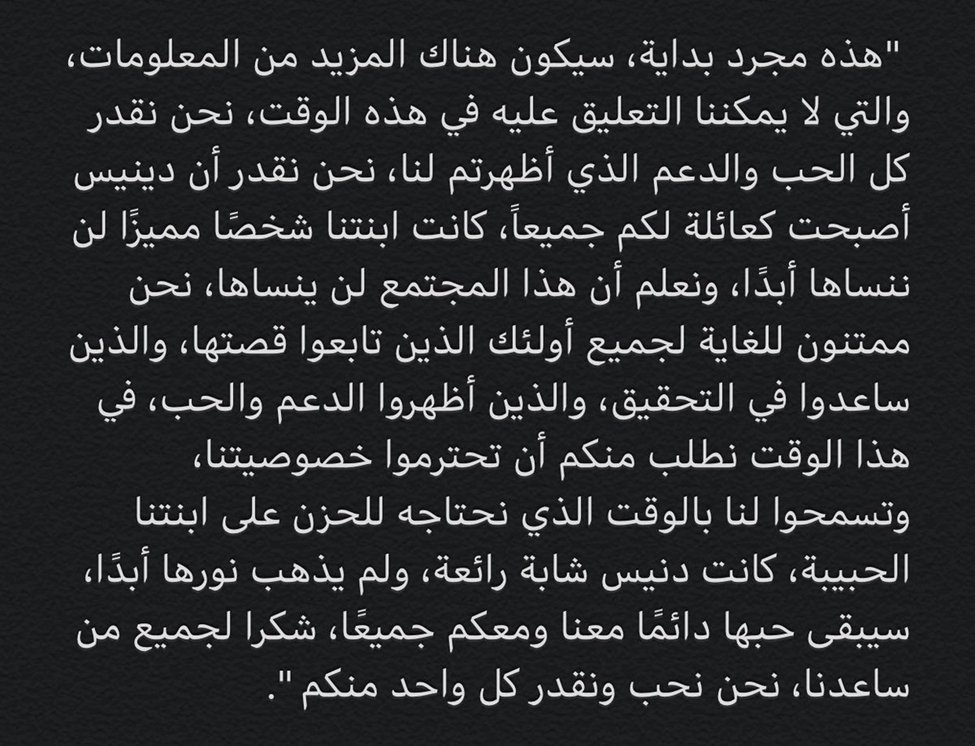 وتقول الشرطة إن التحقيق مستمر فيما يتعلق بتورط أطراف أخرى مع القاتل في هذه الجريمة، ولم يعترف حتى الان بمكان الجثه او ماحدث لها وكل ماذكره انه قتلها فقط،