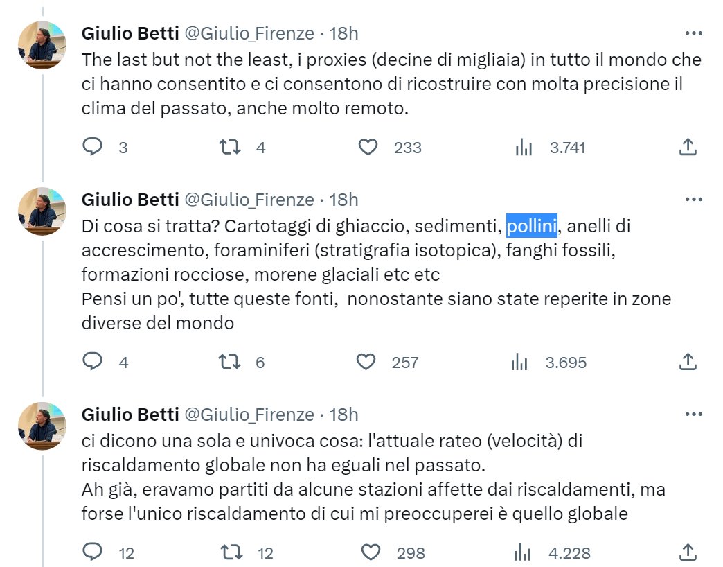 4. Il talebano Betti infine si evira contro @Borghi_Claudio, affermando implicitamente che da pollini & Co. possono sapere la temperatura al decimo di °C di Ladispoli in una certa data e confrontarla. Ovviamente quando i dati geologici sono contrari alle loro teorie, li ignorano.