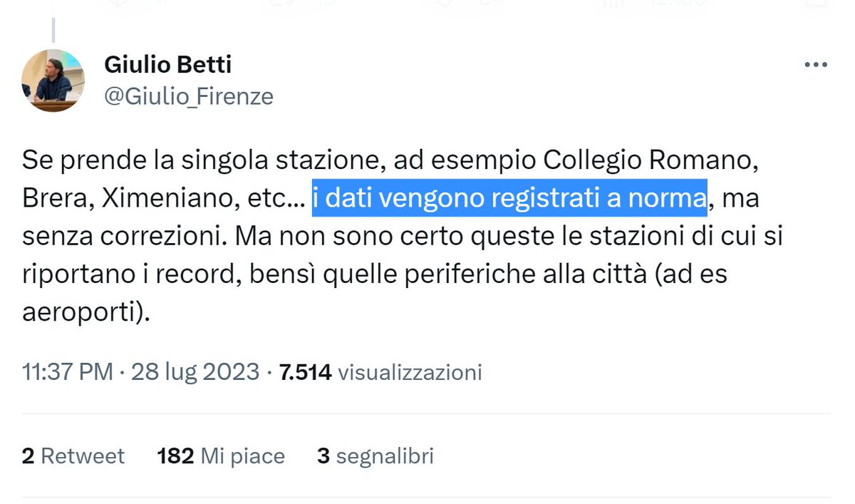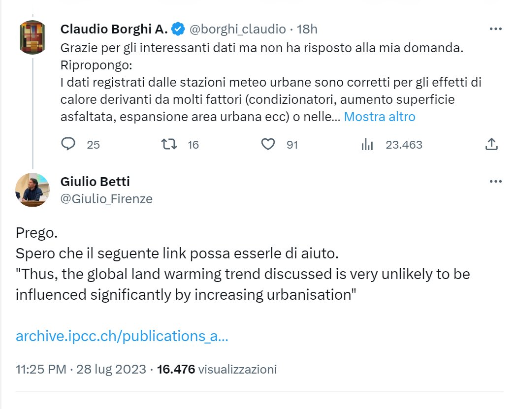 2. Il "meteorologo" Betti, talebano del Climate Change, insiste nel "suicidarsi" contro @Borghi_Claudio, confermando che le centraline meteo messe nelle isole dicalore create da chilometri di asfalto e motori jet a 400-950°C sono "a norma WMO". Non riesce a vedere il problema.
