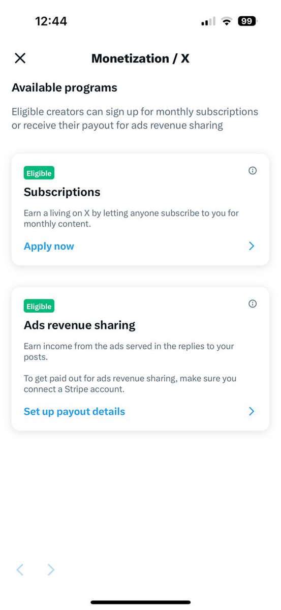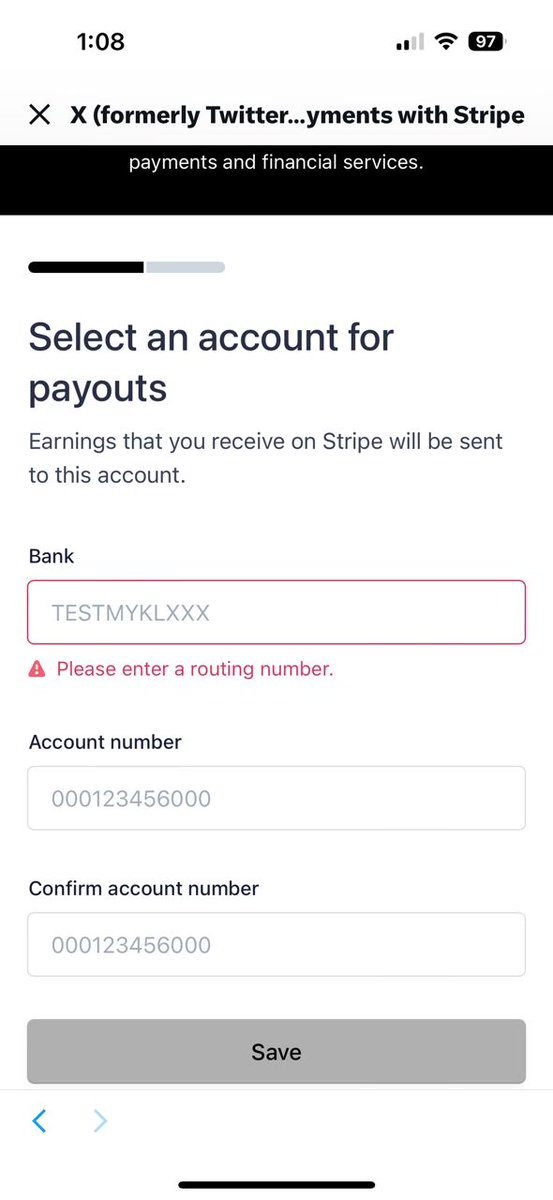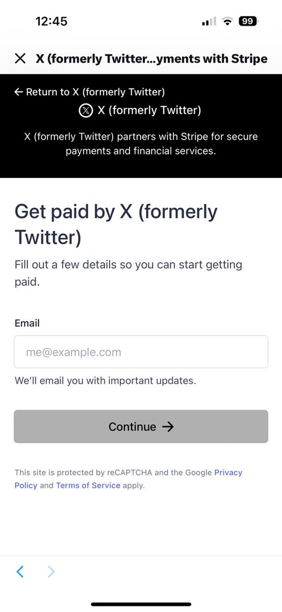4- في الخطوة رقم 5 سيطلب منك تويتر انشاء حساب على بوابة الدفع Stripe لذلك قم بانشاء حساب قبل الانتقال للخطوة.