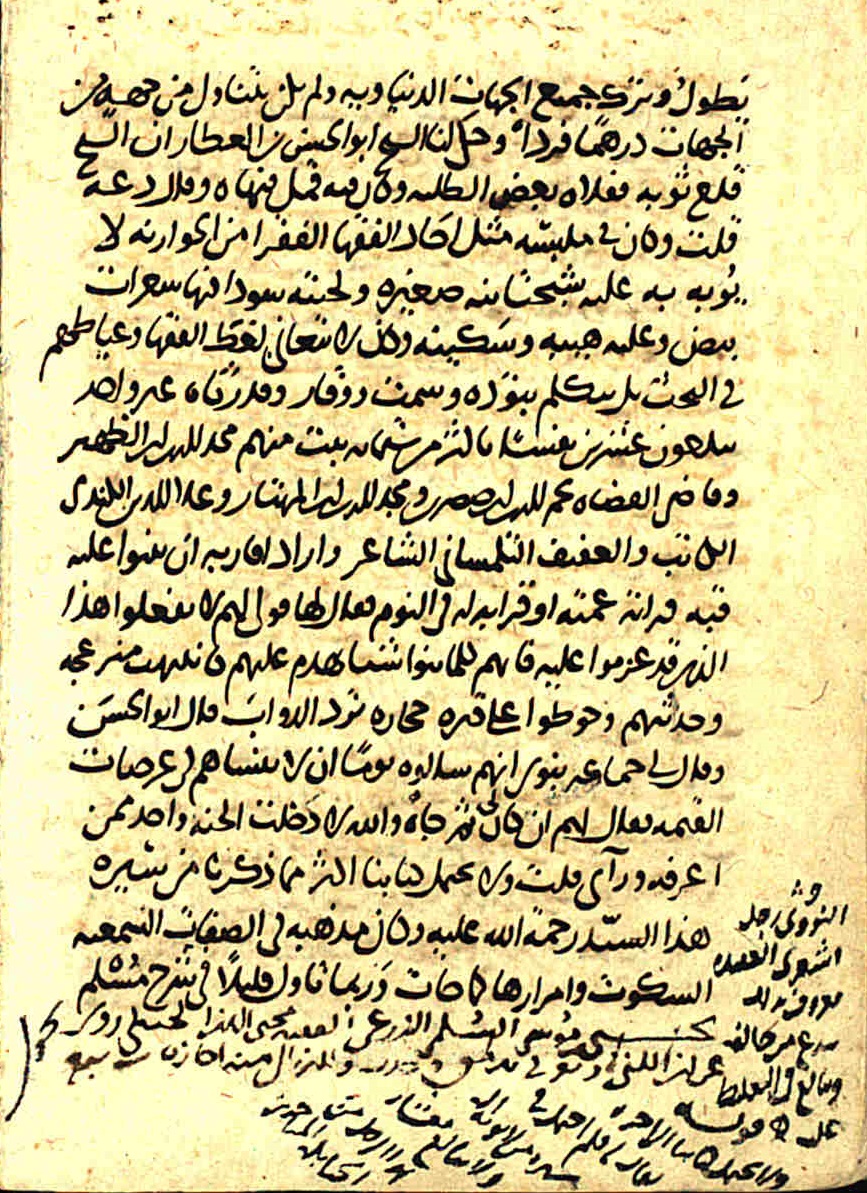 5- النص المكتوب في الحاشية أيمن الصفحة وأسفلها كله حاشية واحدة بخط السبكي يتعقب بها شيخه الذهبي.
