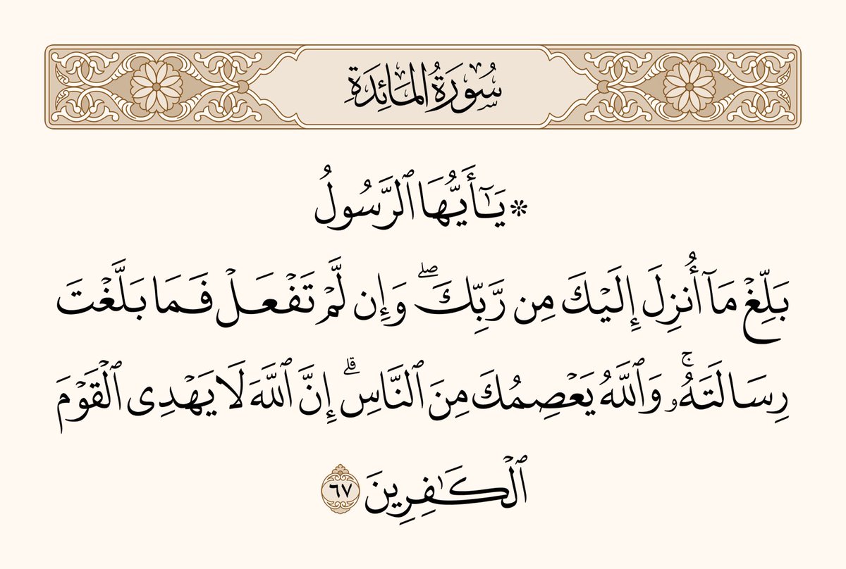 💠 عصم الله نبيه ﷺ من تكذيب المنافقين الكافرين له أو إيذائه قبل أن يُبلغ أخر فريضة أنزلها الله عليه، فريضة يساوي عدم تبليغها عدم تبليغ الرسالة كلها، لأن هذه الفريضة وظيفتها حفظ الرسالة.