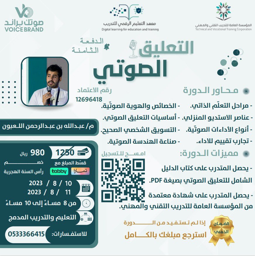دورة تدريبية بشهادة معتمدة عن التعليق الصوتي، مهمة جدًا لو تبي مصدر دخل ثاني..