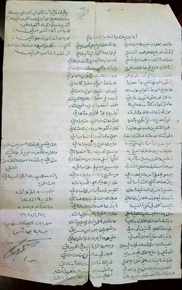 ومن جمال كلمات الأغنية عُلقت بعدها على جدار جامعة بغداد إلى يومنا هذا