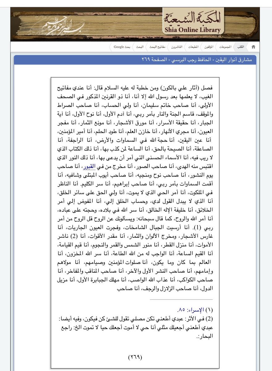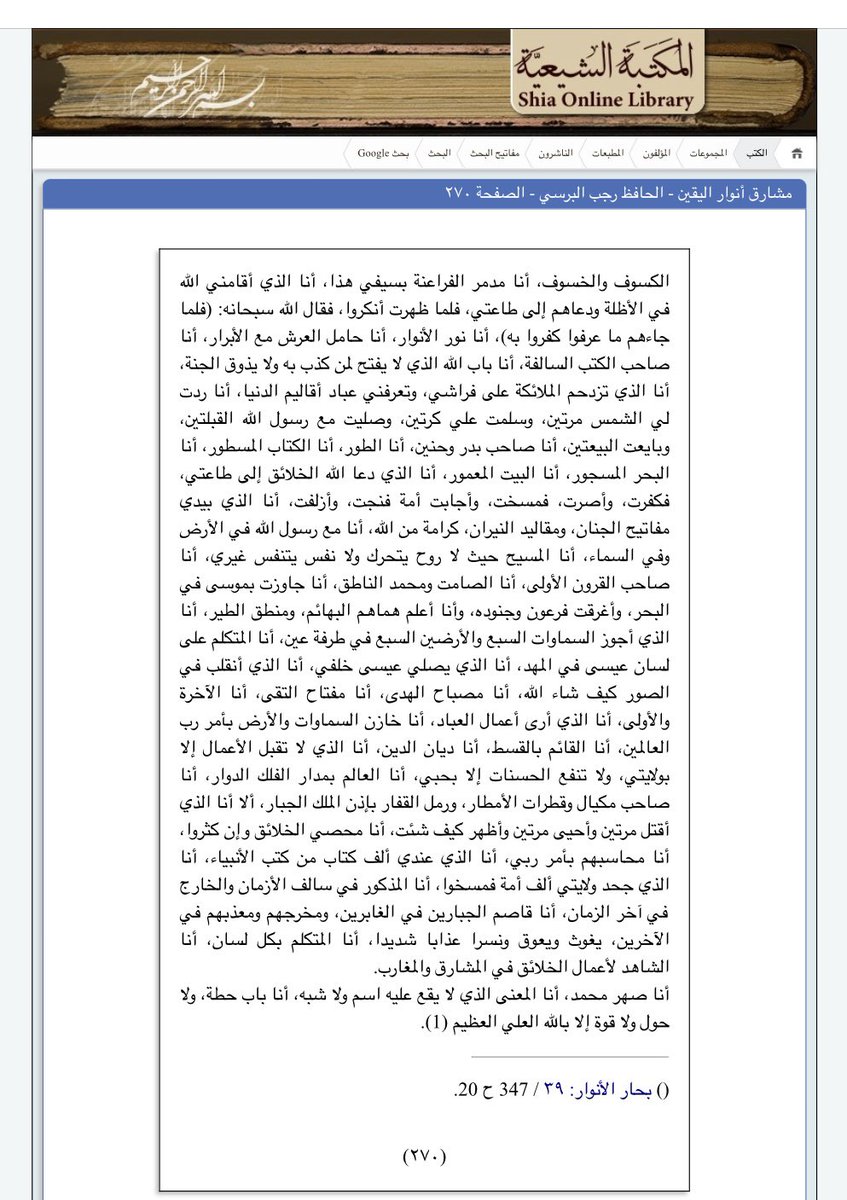 في كتاب مشارق انوار اليقين للحافظ رجب البرسي ذكر ان #الامام_علي عليه السلام والمدفون في #النجف قال في احدى خطبه: