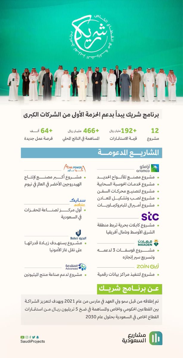برعاية صاحب السمو الملكي الأمير محمد بن سلمان بن عبدالعزيز يهدف #برنامج_شريك إلى تعزيز الشراكة مع القطاع الخاص ودعم دورة النمو المستدام لاقتصاد المملكة.