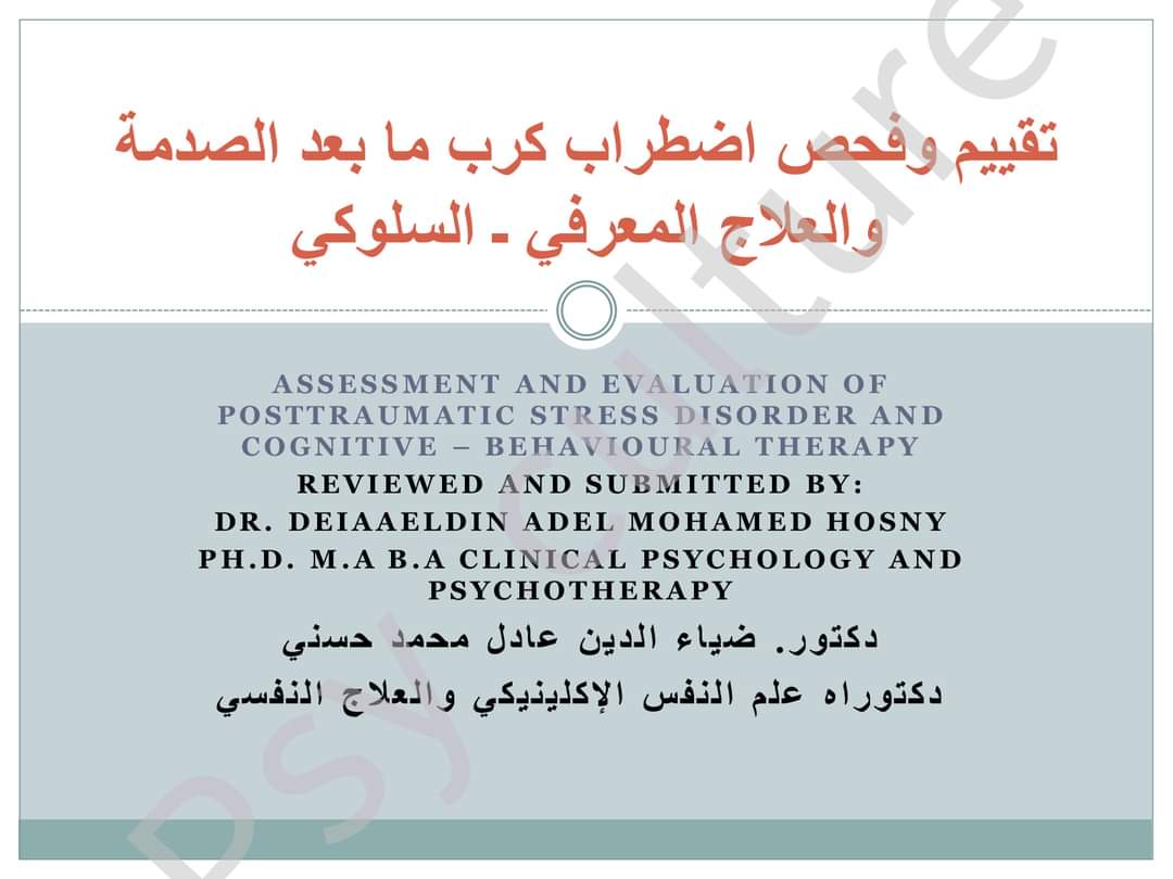 #محاضرة_رائعة. تقييم وفحص #اضطراب_كرب_ما_بعد_الصدمة. وفق #العلاج_المعرفي_السلوكي. #ما_بعد_الصدمة #ثـقــــPSYـــــافــــة