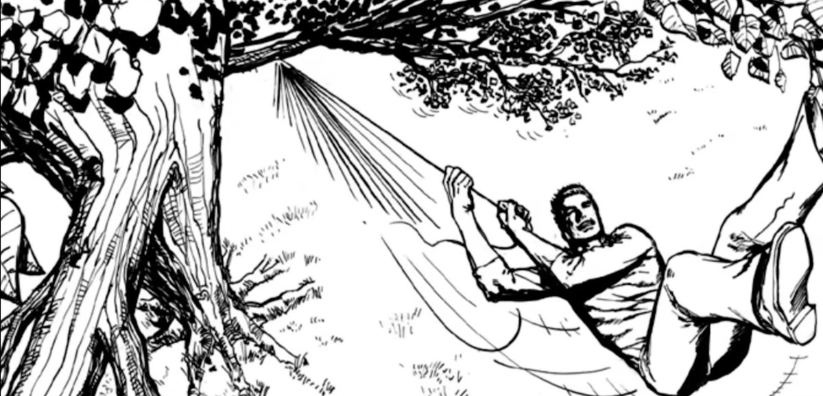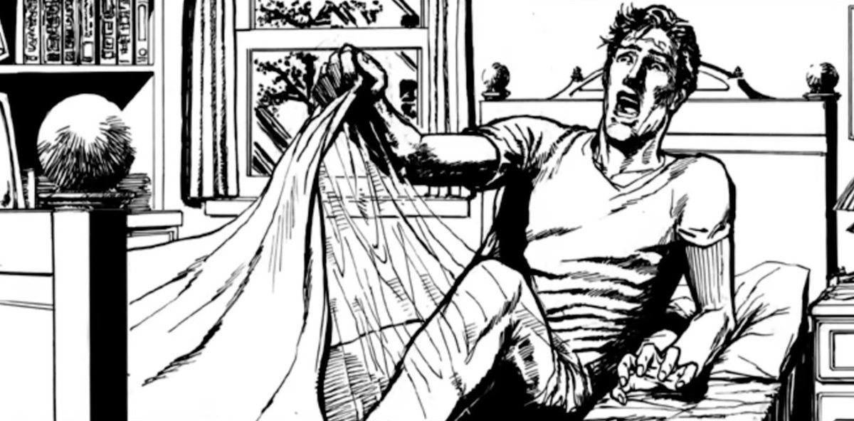 بعد الاستيقاظ يجد نفسه على ارتفاع 80 متر ومكانه في اعلى برج الإرسال وهو لا يتذكر كيف صعد إلى الأعلى وبعدها يرجع إلى المنزل وثم يحصل له نفس الهلوسات ويستيقظ ويجد ملاءات السرير ملتصقه به ويرفعها ويشوف ماده بيضاء وهي الشباك هي سبب الالتصاق ولها أيضًا معنى آخر وقذر ….