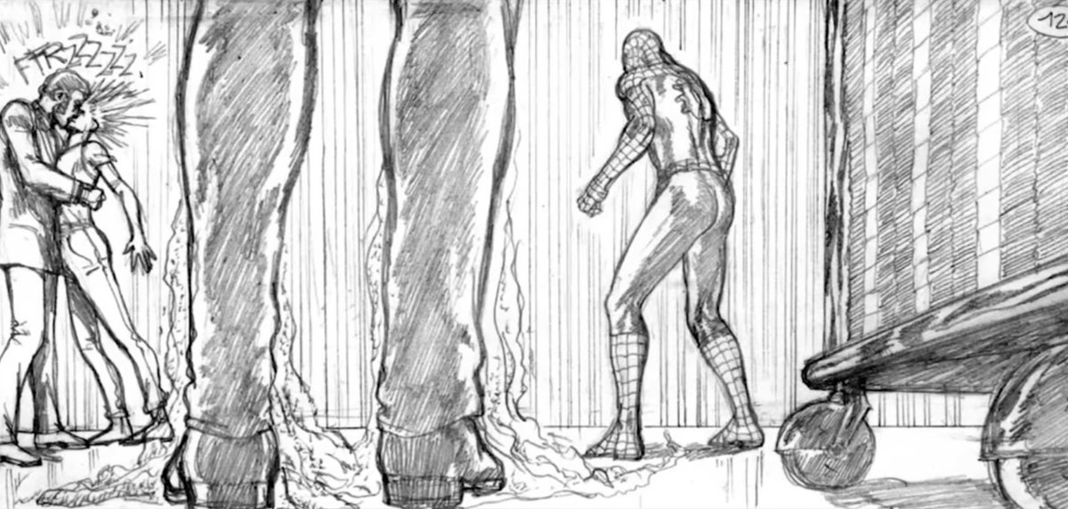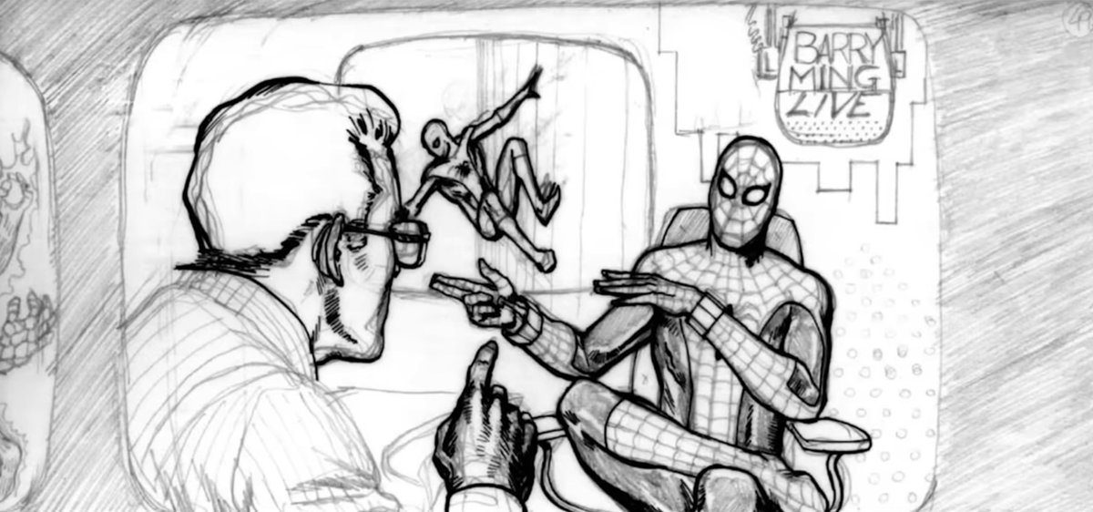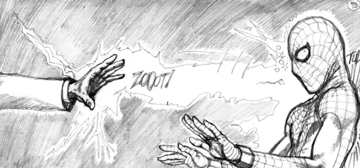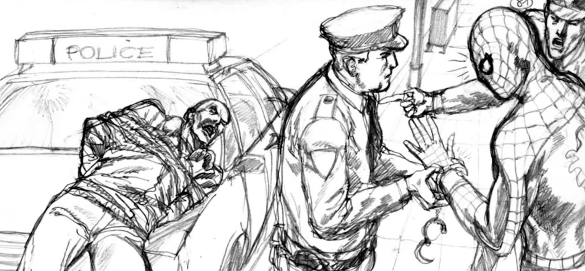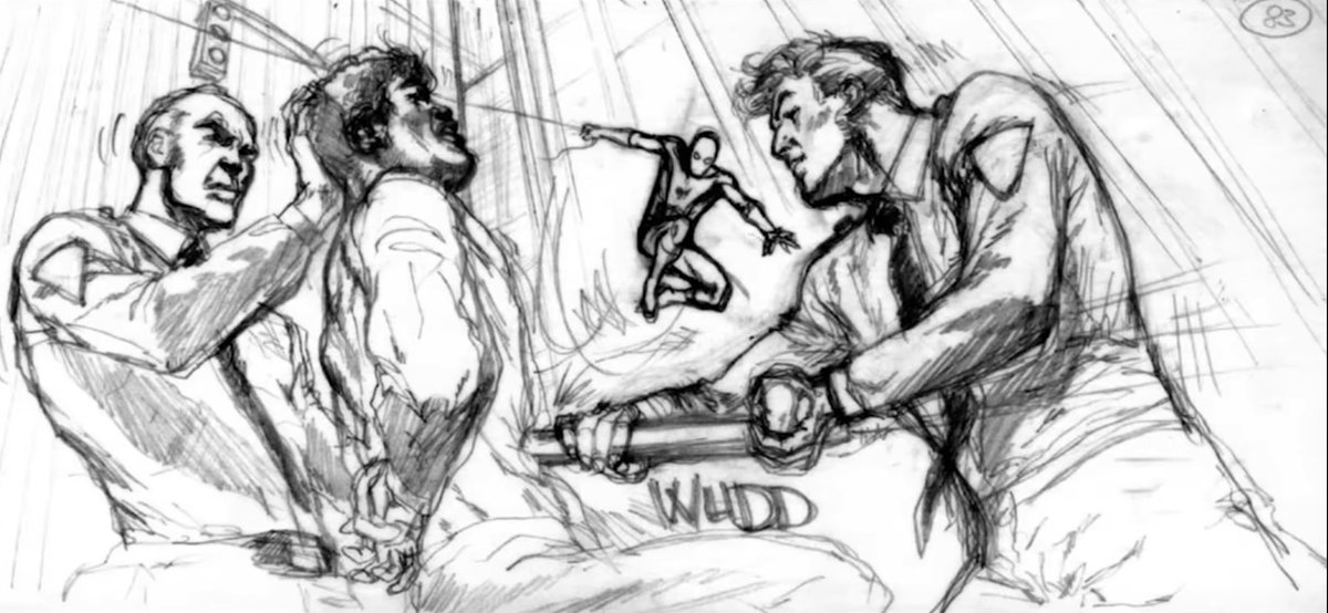 بمعنى ان كل شخصية تقول كلام قذر بالفلم وحتى سبايدرمان!!! وأيضًا خلال كتابته لبيتر باركر فكر ان المراهق الحقيقي وش راح يسوي بالقوة العظيمة هذي وقال يجب يكون عندك قيم اخلاقية للتعامل مع القوة الكبيرة المتاحة لبيتر ، وبما انها اورجن الفصل الاول كان مشابه جدًا لنسخة سام ريمي….