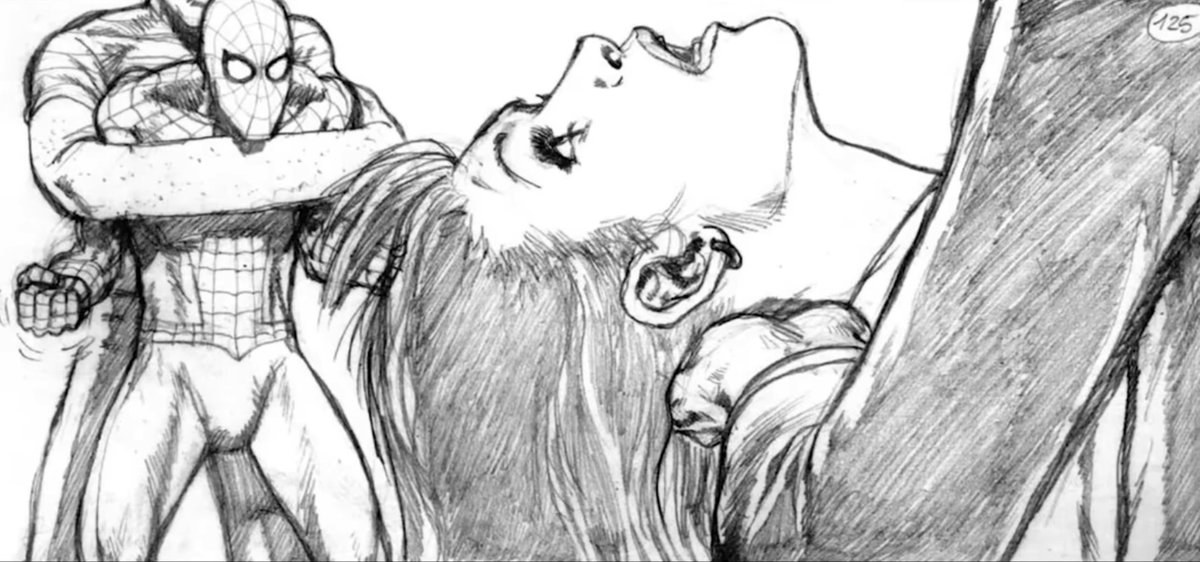 وبعدها يقرص العنكبوت بيتر خلال اخذه صور لجريدة المدرسة وتنتقل الجينات إليه وعندما يعود إلى المنزل ويذهب إلى غرفته ويغمى عليه على السرير ويذهب في رحله نفسية بسبب الهلوسة للعناكب ، ونلاحظ انها مشابهة جدًا لنسخة ريمي مع اختلاف لحظة استيقاظ بيتر ….