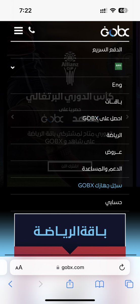 بعد ما اخذت الرقم التسلسلي المكون من ١٥ رقم تروح الى موقع gobx.com و تضغط سجل جهازك GOBX