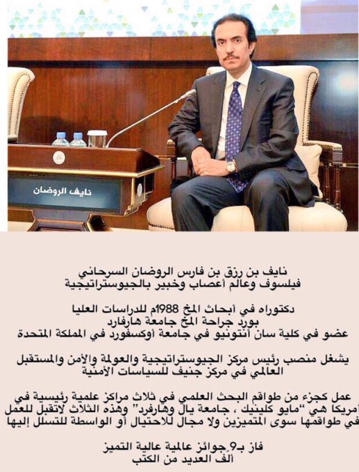 البروفيسور نايف الروضان السرحاني فيلسوف وعالم وجراح سعودي رشح لجائزة نوبل، من نوابغ العرب في عصرنا الحديث ومن ضمن العلماء الأكثر تأثيراً في العالم