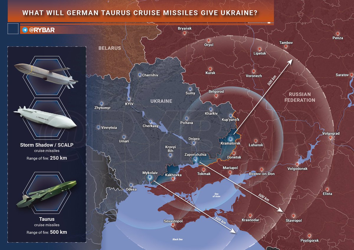 3/ La probabilità che Kiev possa resistere alla tentazione di lanciare i missili a lungo raggio 🇩🇪Taurus (fornitura confermata nei giorni scorsi) in profondità nel territorio russo non è troppo alta. 👇🤦🏻♂️
