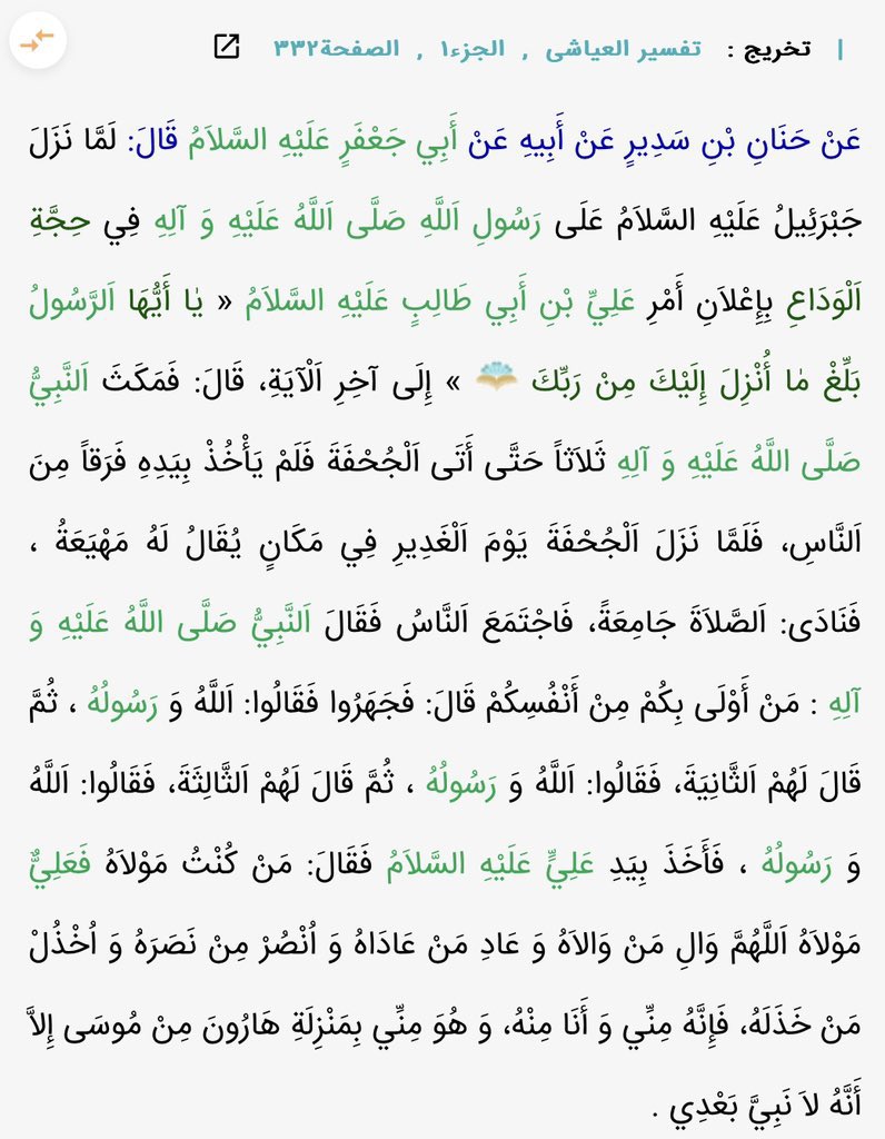 وهكذا، اطمأن رسول الله ﷺ بهذه الآية أن الله سيعصمه من تكذيب المنافقين له، وأنهم لن يمنعوه من تبليغ هذه الفريضة التي تتوقف عليها رسالته، فصدع بأمر الله وبلّغ الولاية في غدير خم قبل أن يصل إلى المدينة.