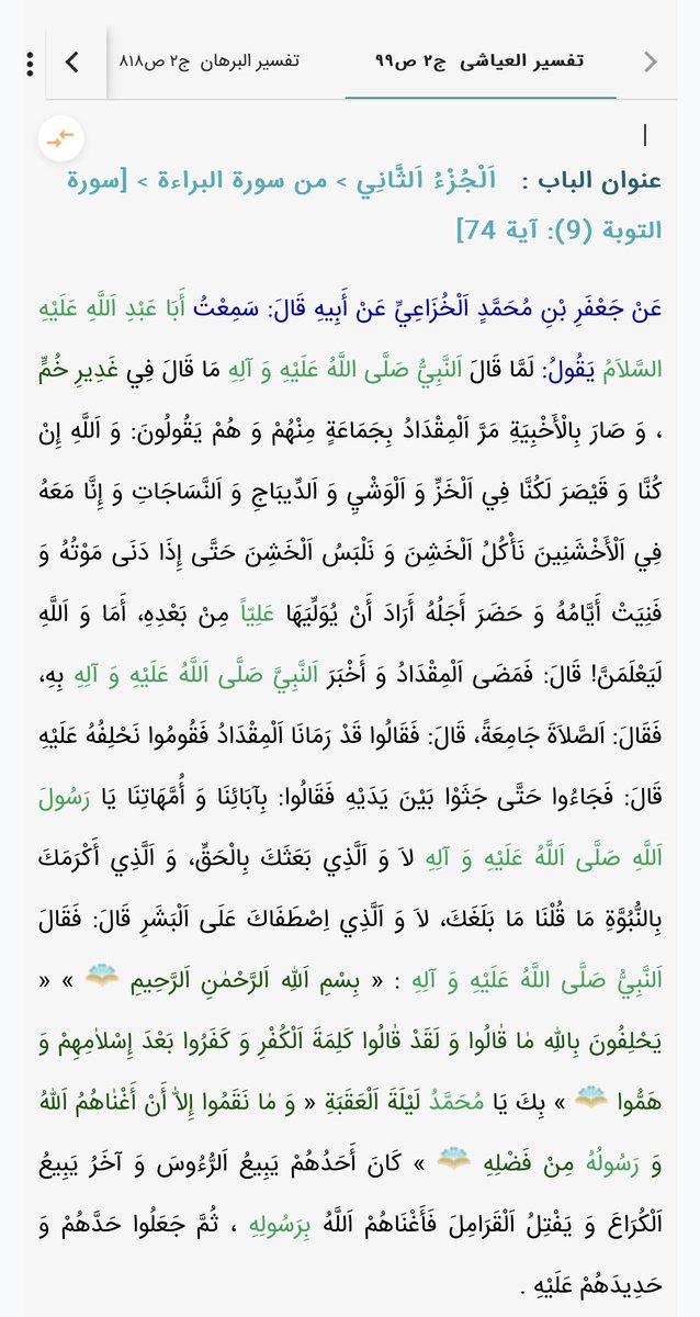 والبعض الآخر اهمل القصة كلياً ونقل قصص موضوعة في أسباب نزول آية «وهموا بما لم ينالوا» وعن حقيقة «كلمة الكفر».