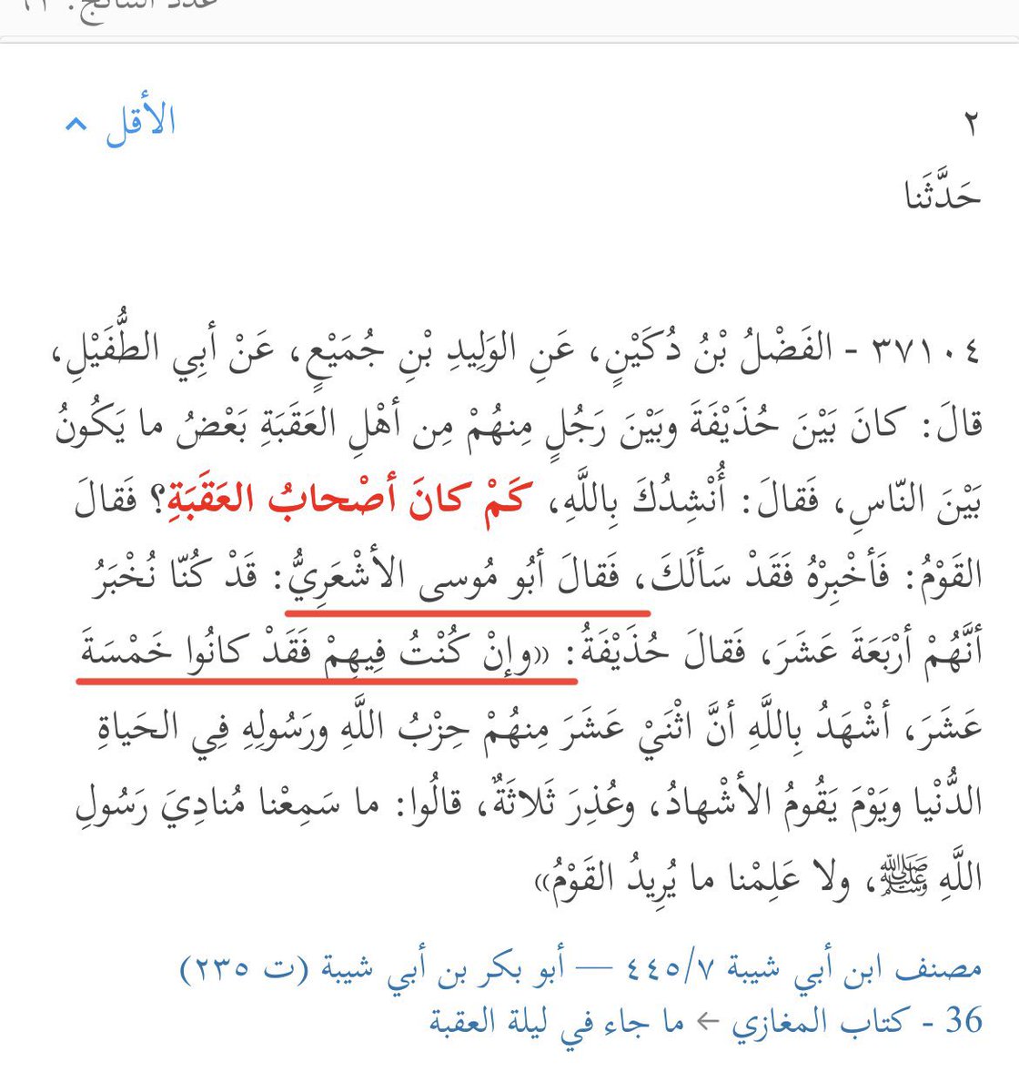 أما ليلة العقبة بهذه الخصوصية بذكر حذيفة وعمار، وسؤال عمر لحذيفة إذا كان منهم، وقصة عمار مع أبي موسى الأشعري، وقصة الدبيلة في صفّين، هذا كله يخص حادثة هرشى.