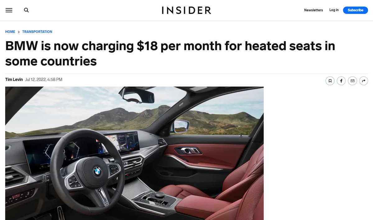 BMW launched a monthly subscription for heated seats and a heated steering wheel in several countrie...
