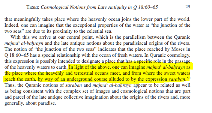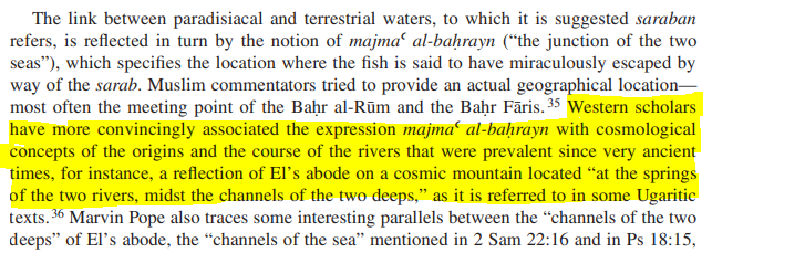 Or, dans la sourate 18, Moise dit à son valet qu'il souhaite atteindre "le confluent des deux mers" (v. 60).