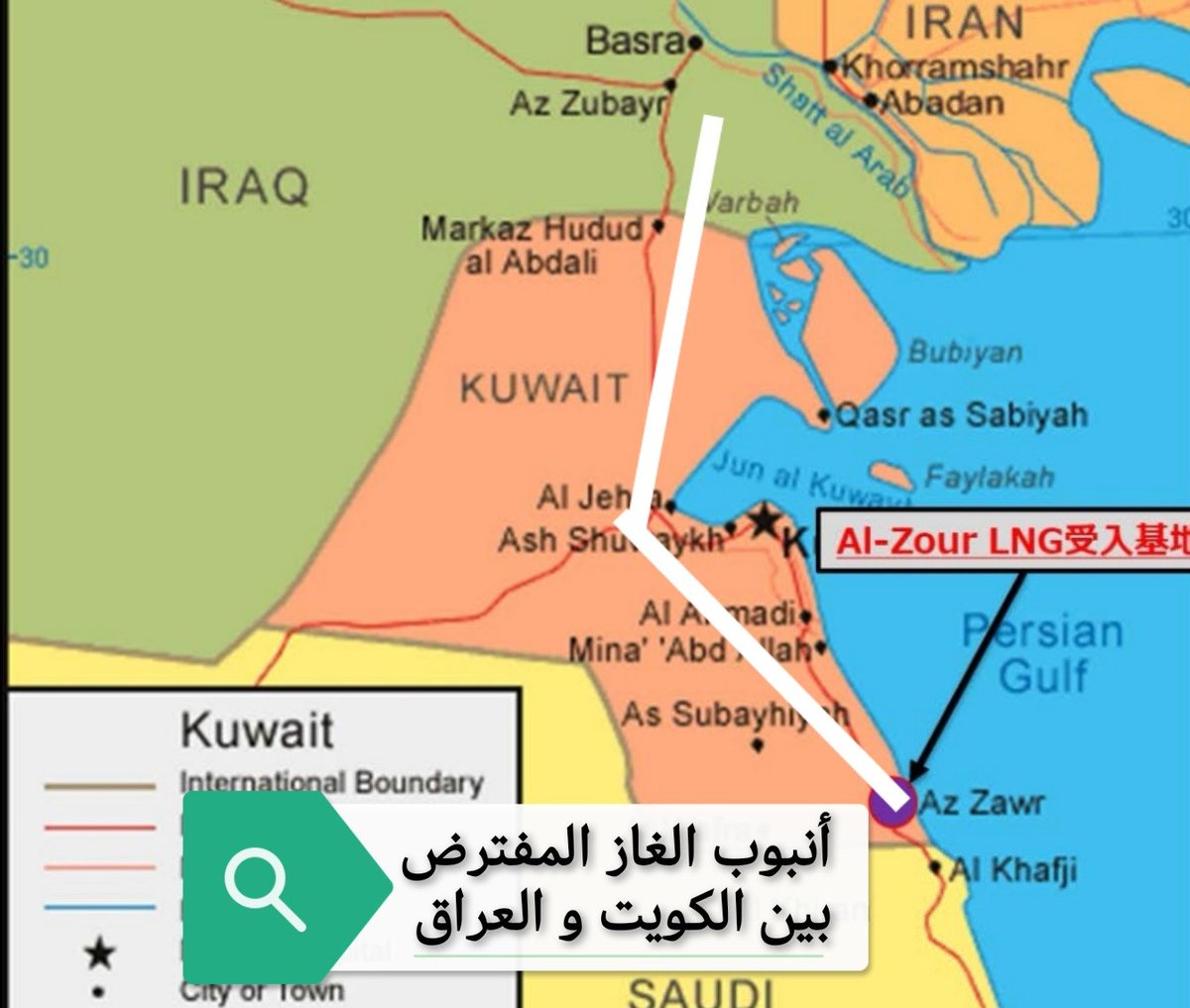 7⃣لو تم مد أنبوب غاز بطول250كم من(محطةالزور للغاز المسال)الى البصرةبقطر(36إنج)بمدةلاتتجاوز السنة،ستتمكن(الكويت)من تجهيز العراق بالغاز بكميةلاتقل عن(15مليار م٣من الغاز سنوياً)لتغطي حاجته المستقبليةمن الغاز