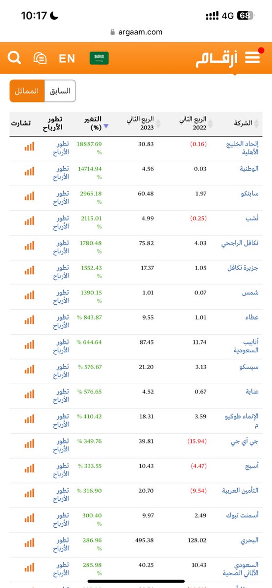 النتائج المالية للربع الثاني لعام 2023 مقارنة بالمماثل لعام 2022 من الافضل للاسواء.المصدر ارقام