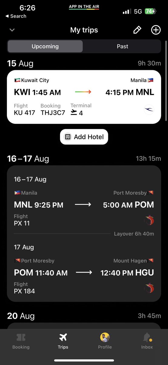 ١- يذكرك برحلتك بالضبط ، جم يوم أو ساعة باقي عليها ، موعد الجك ان ، موعد البوردنق ، رقم البوابة أو إذا تغيرت ، حتى رقم سير الحقائب , يارجل حتى وانت طاير تعرف كم باقي على رحلتك و توصل 🧭