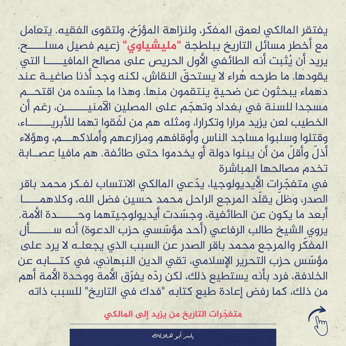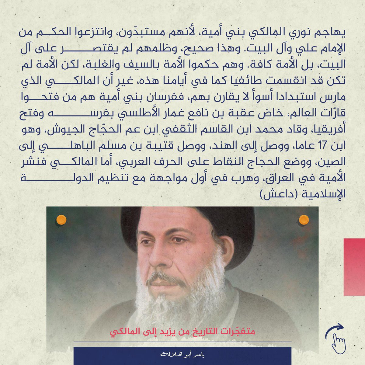 1-مقالي متفجّرات التاريخ من يزيد إلى #نوري_المالكي أكشف جهله بالتاريخ، واستخدامه له تكريسا لزعامته الطائفية الفاسدة، ما كان قتلة الحسين سنة ولا شهداء كربلاء شيعة متفجّرات التاريخ من يزيد إلى المالكي