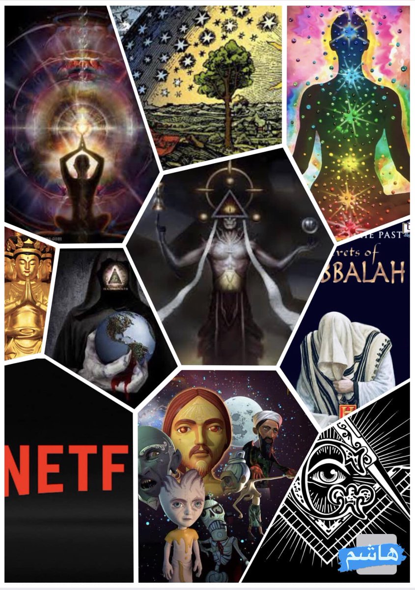 والتبشير بالعصر الجديد والتحرر من الجسد وتأليه الإنسان وتناسخ الأرواح وحدة الأديان وفي النهاية عبادة إبليس