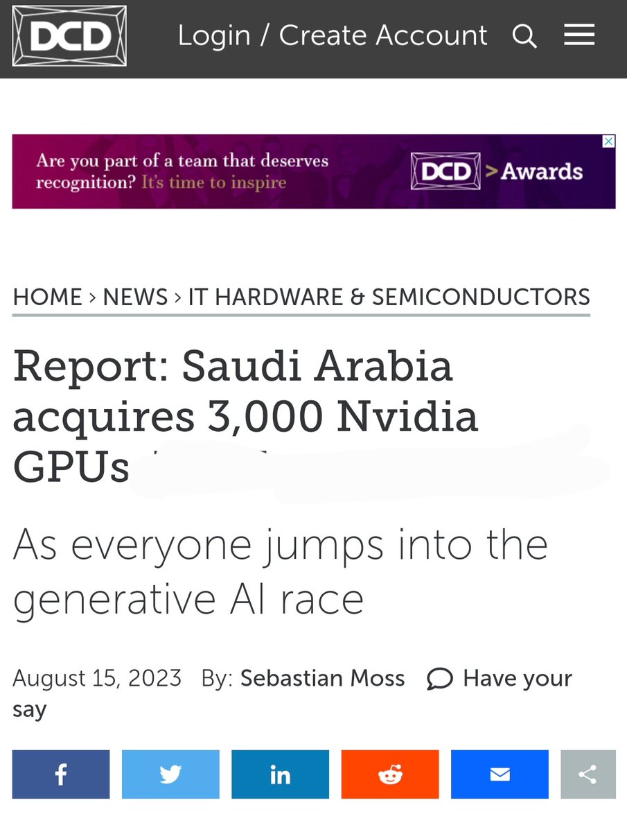 في وسط النقص العالمي في #أشباه_الموصلات، فاجأت #السعودية العالم بعقد صفقة شراء ما لا يقل عن 3000 من رقائق #اشباه_الموصلات H100 من شركة #Nvidia.