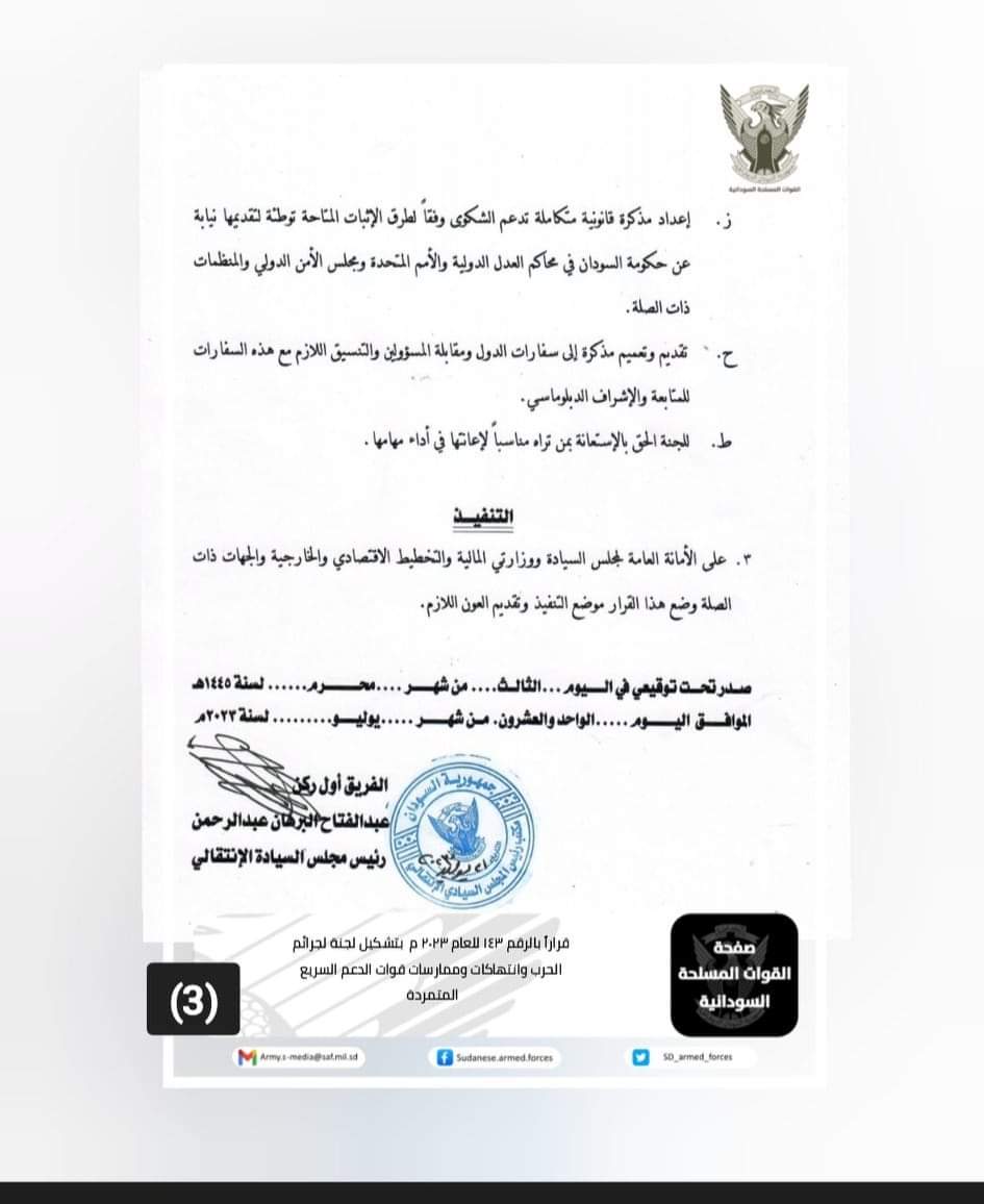 جمهورية السودان لجنة جرائم... - القوات المسلحة السودانية