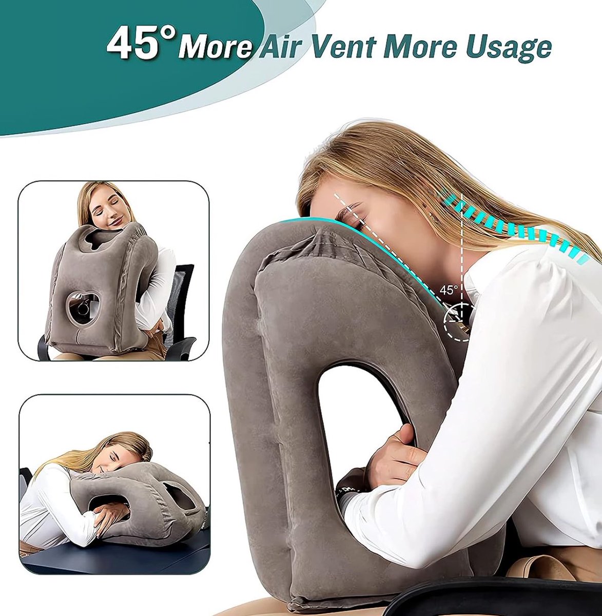 وسادة سفر قابلة للنفخ من دينزوز لتجنب الام الرقبة والكتف، تدعم الرأس والذقن بشكل مريح للطائرات والقطارات والسيارات وقيلولة المكتب مع شنطة محمولة برباط سحب (رمادي)