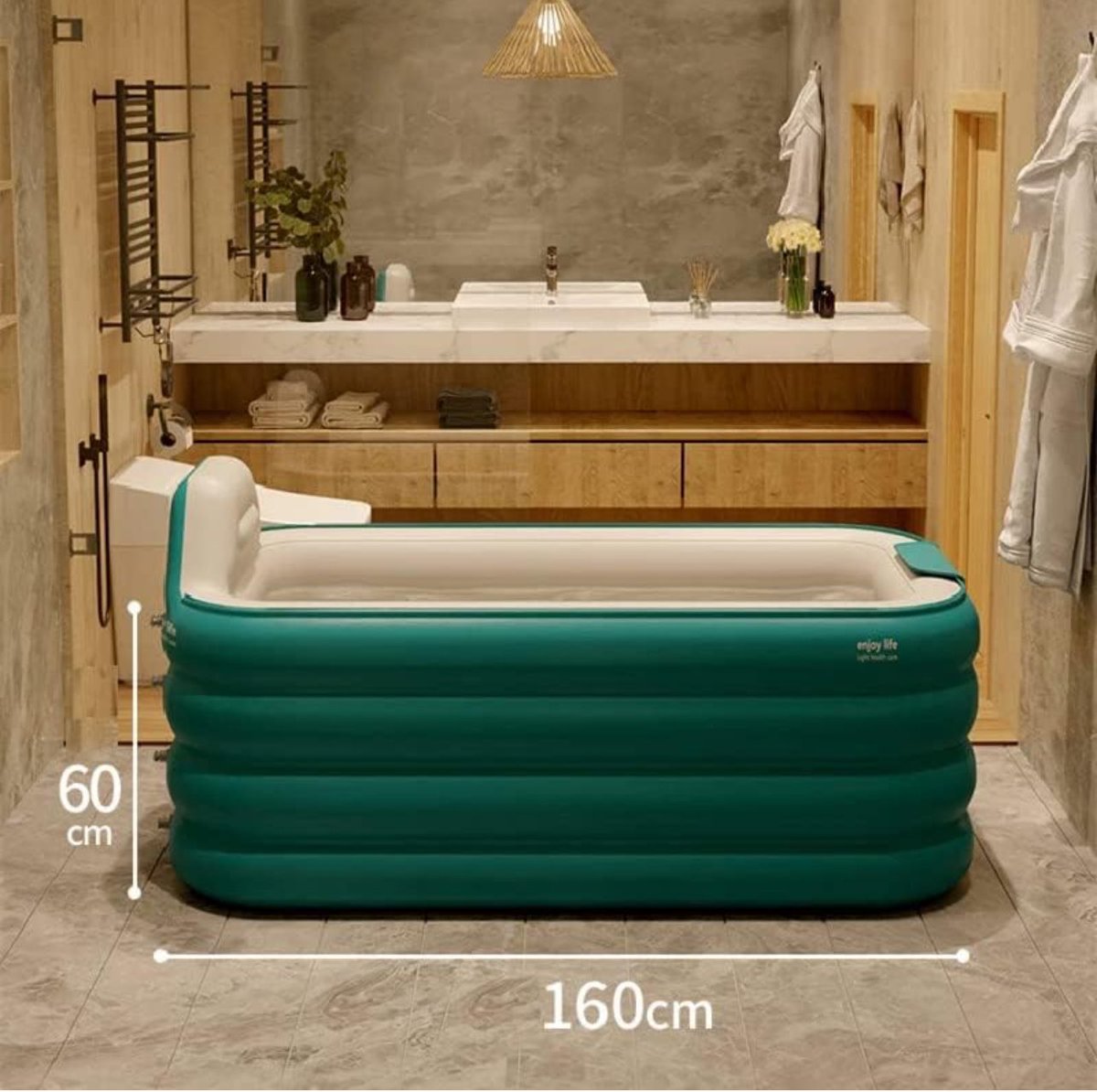 🟢حوض استحمام قابل للنفخ من اف ام كيو شوب، مقاس 160 سم/ 63 انش، تصميم بغطاء قابل للحمل والطي للمساحات الصغيرة
