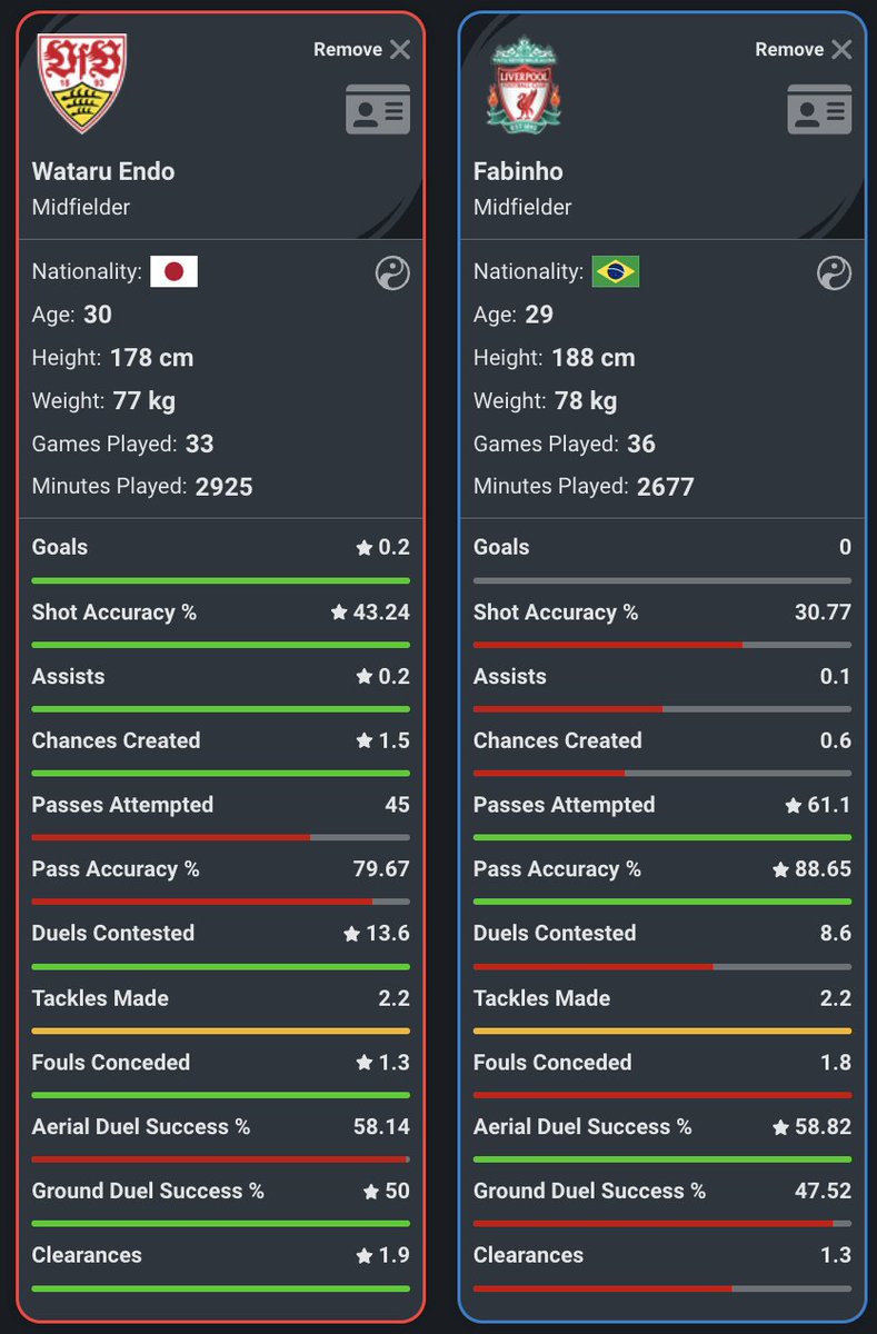 COMPARED: Wataru Endo vs Fabinho per90 in the league in 2022/23. 🕶