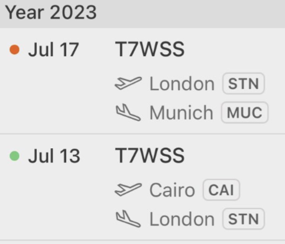 3- رحلة الطائرة في 13 يوليو 2023 من القاهرة لـ لندن ثم من لندن لـ ميونيخ في 17 يوليو ، هنلاقي عصام ناشر (Post) بيوثق فيه وجوده في لندن بتاريخ ١٧ يوليو.