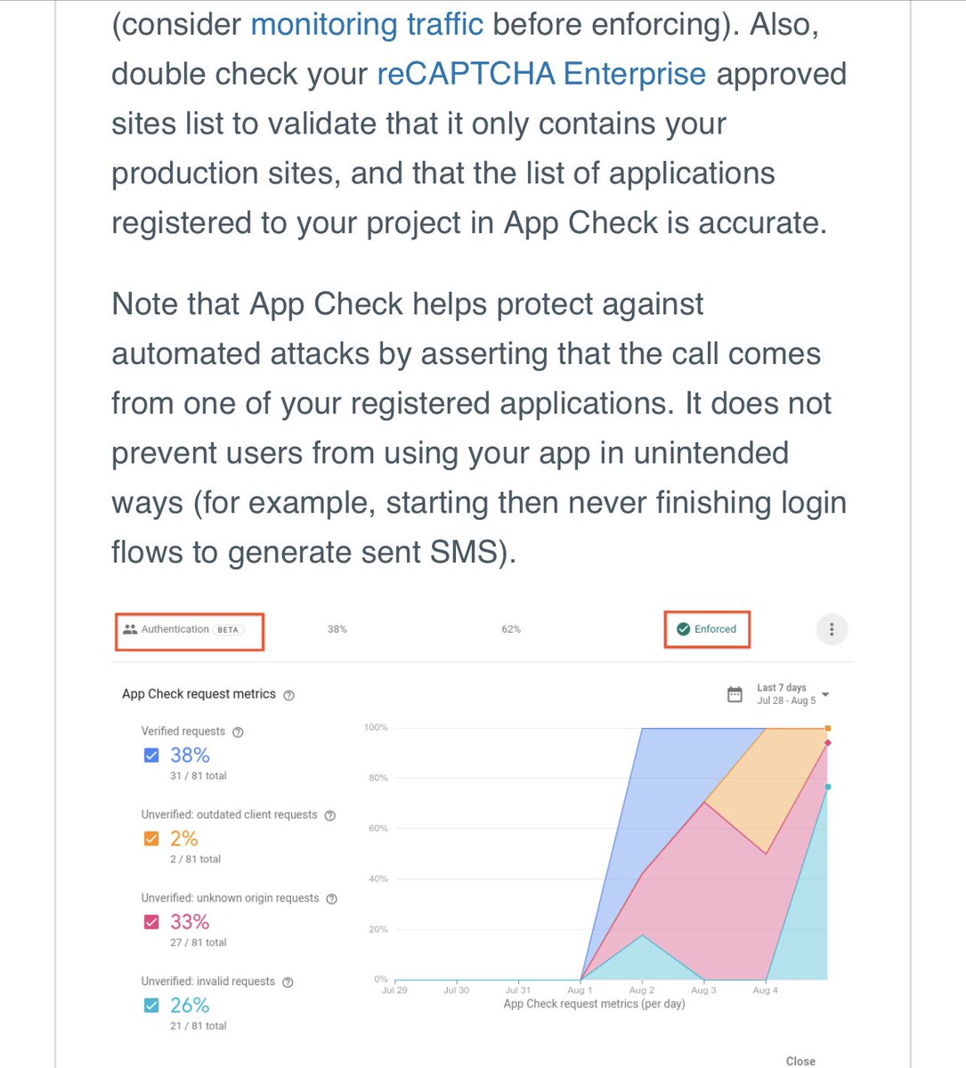 بكل بساطة، فيه ثغرة يستطيع من خلالها الاشخاص استغلال استخدامك لخدمات تسجيل الدخول باستخدام ال SMS من فايربيس بحيث يقومون بارسال رسائل SMS على حسابك. بالنسبة لي وبعد البحث وجدت نصف الرسايل كانت رايحة اليمن والباقي دول عربية متفرقة. يبدو ثغرة قديمة وقوقل جالسة تدفع بالنيابة 😂.