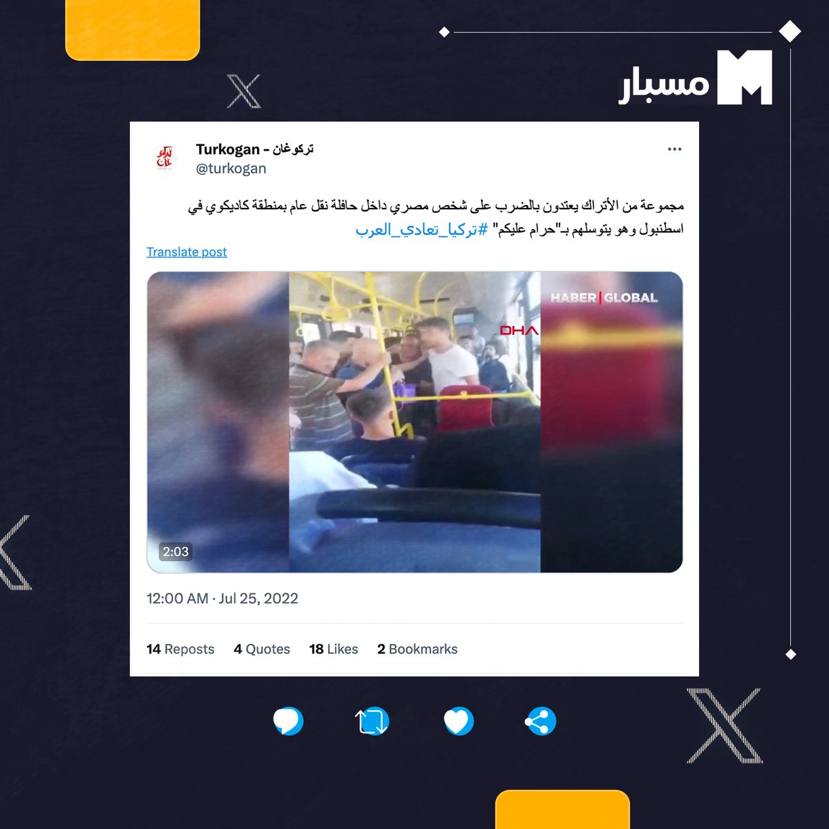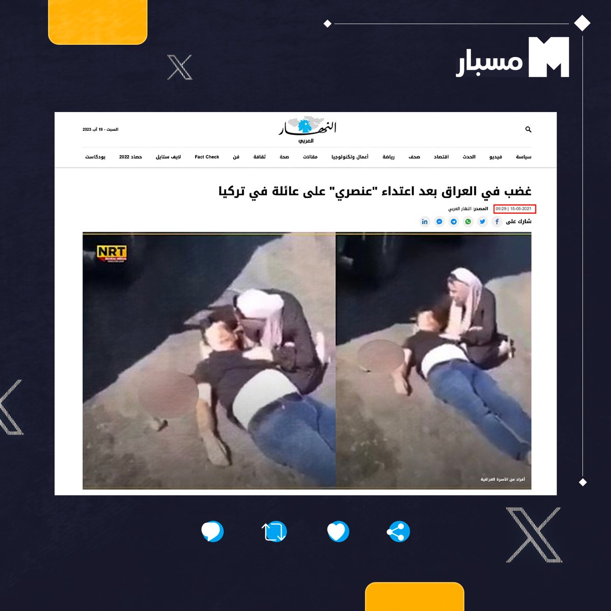 🔵 في مايو 2021، تعرّضت عائلة عراقية تنحدر من محافظة أربيل لاعتداء وُصف بـ"العنصري" خلال رحلة سياحية إلى #تركيا. واعترض أتراك، لسيارة الأسرة العراقية على الطريق الواصل بين مدينتي مرسين أنطاليا، قبل أن يشرعوا في إلقاء الحجارة عليها والاعتداء على راكبيها بالضرب المبرح