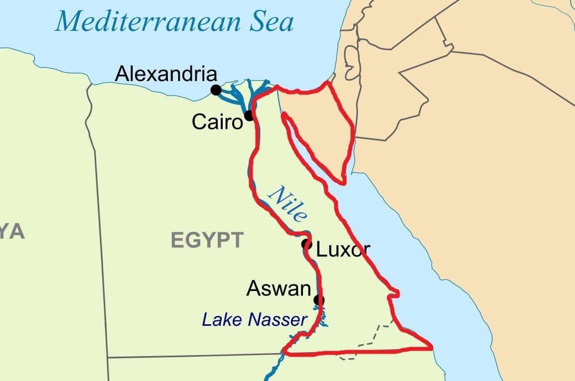 بل إن كامل المنطقة الواقعة بين نهر النيل و