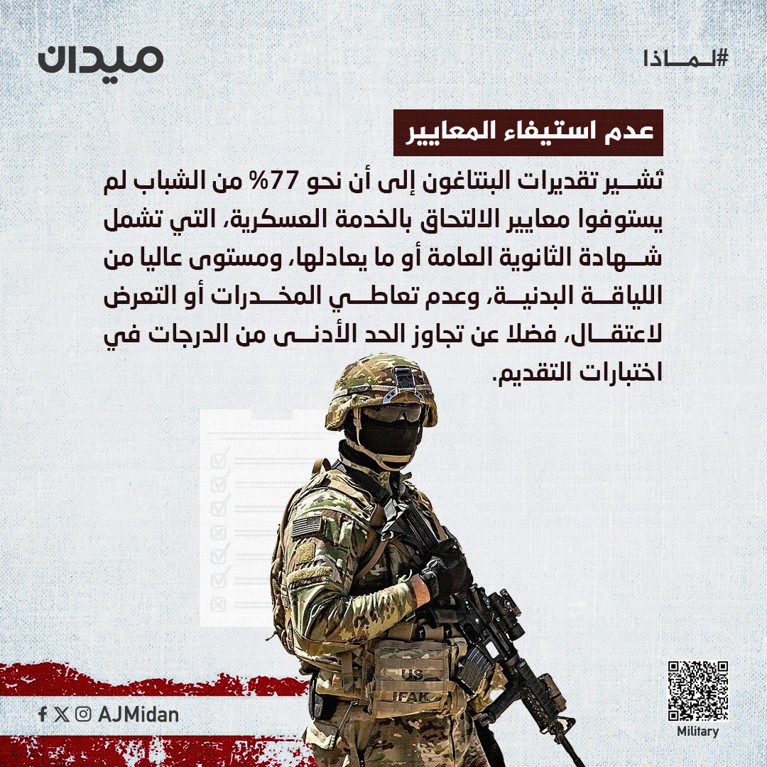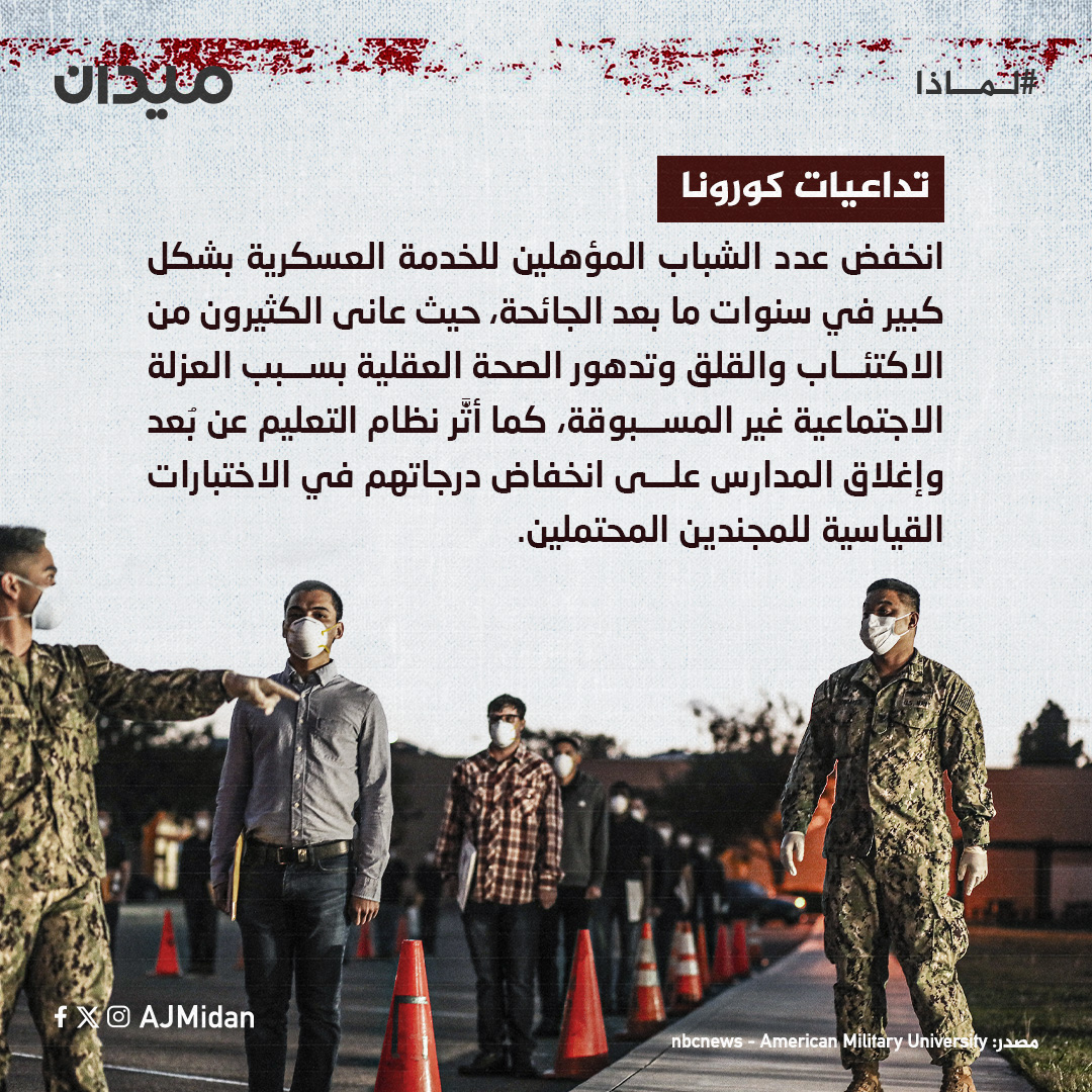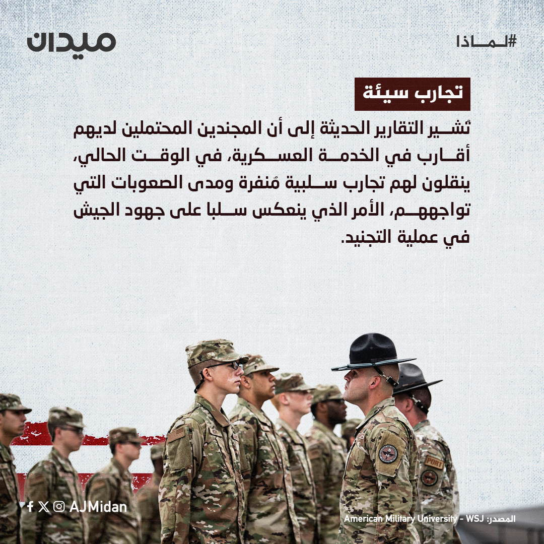 تُعاني أميركا هذه الأيام من أزمة قومية حقيقية تُقوِّض قدرتها على خوض الحروب المستقبلية بعد عجز #الجيش_الأميركي عن تلبية احتياجاته من المجندين في ظل تدني معدلات التجنيد الحالية.. لماذا يُعاني الجيش الأميركي في استقطاب مجندين جُدد إذن؟