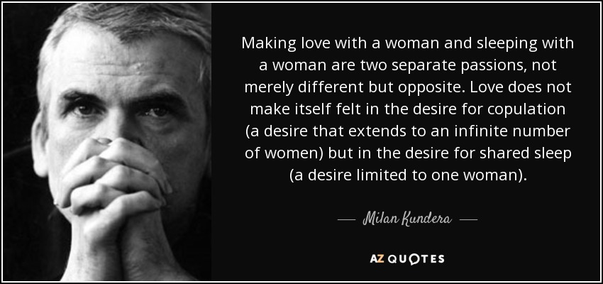 بيمارس كونديرا أحد ألاعيبه المفضلة في تفكيك اللغة؛ الفرق بين "ممارسة الجنس" و"النوم المشترك"