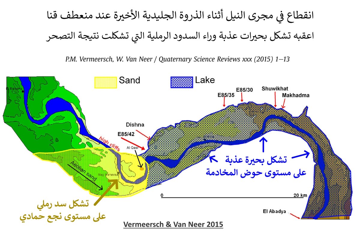 مما ترتب عند توقف مجرى النيل عند منعطف قنا بمصر مع تشكل سدود رملية عند نجع حمادي