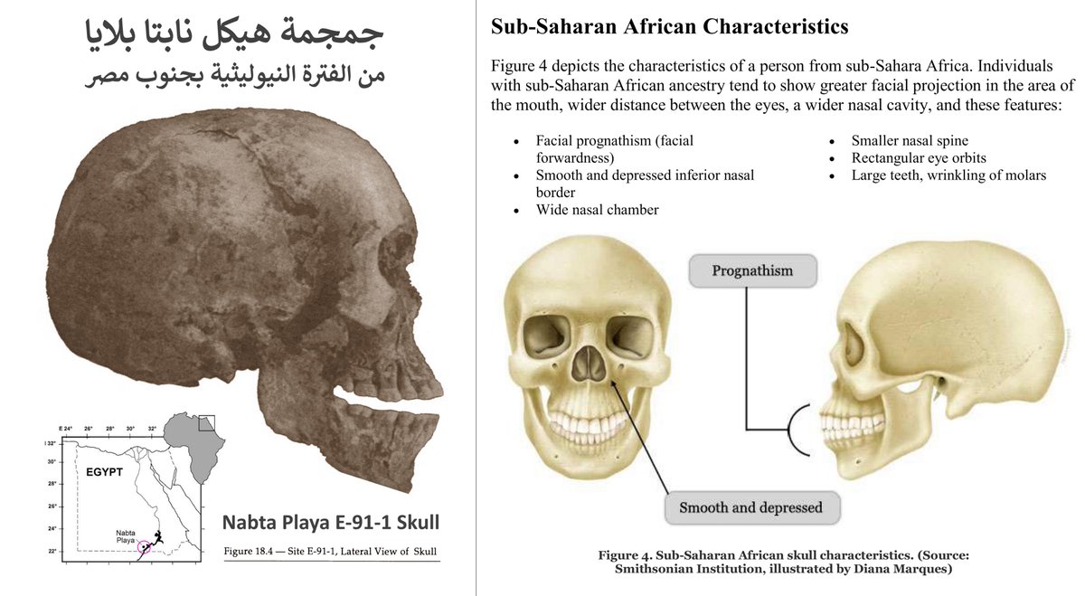 فتُظهر هياكلها سمات مورفولوجية شبيهة بساكنة جنوب الصحراء (النيلية_الصحراوية)