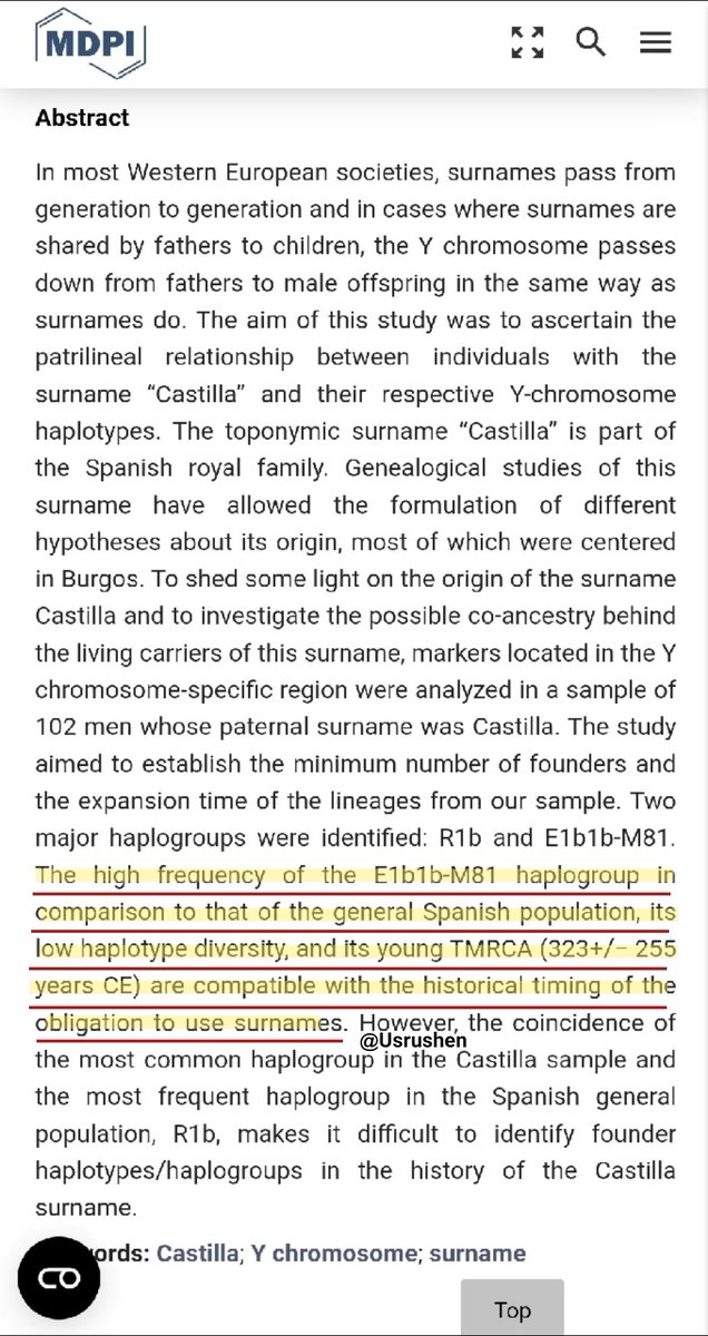 ▪︎و نتيجة الدراسة النهائية ان حاملي السلالتين الامازيغية E-M81 و الاوروبية R1b هما المسيطرتين على اللقب الملكي Castilla / القشتالي ، و ان الاحتمال الأكبر ان يكون مؤسس اللقب #امازيغي_السلالة وارد جدا كما شرحنا في التغريدة السابقة ، و هذه ضربة مهمة جدا حيث تبين التاثير الامازيغي!