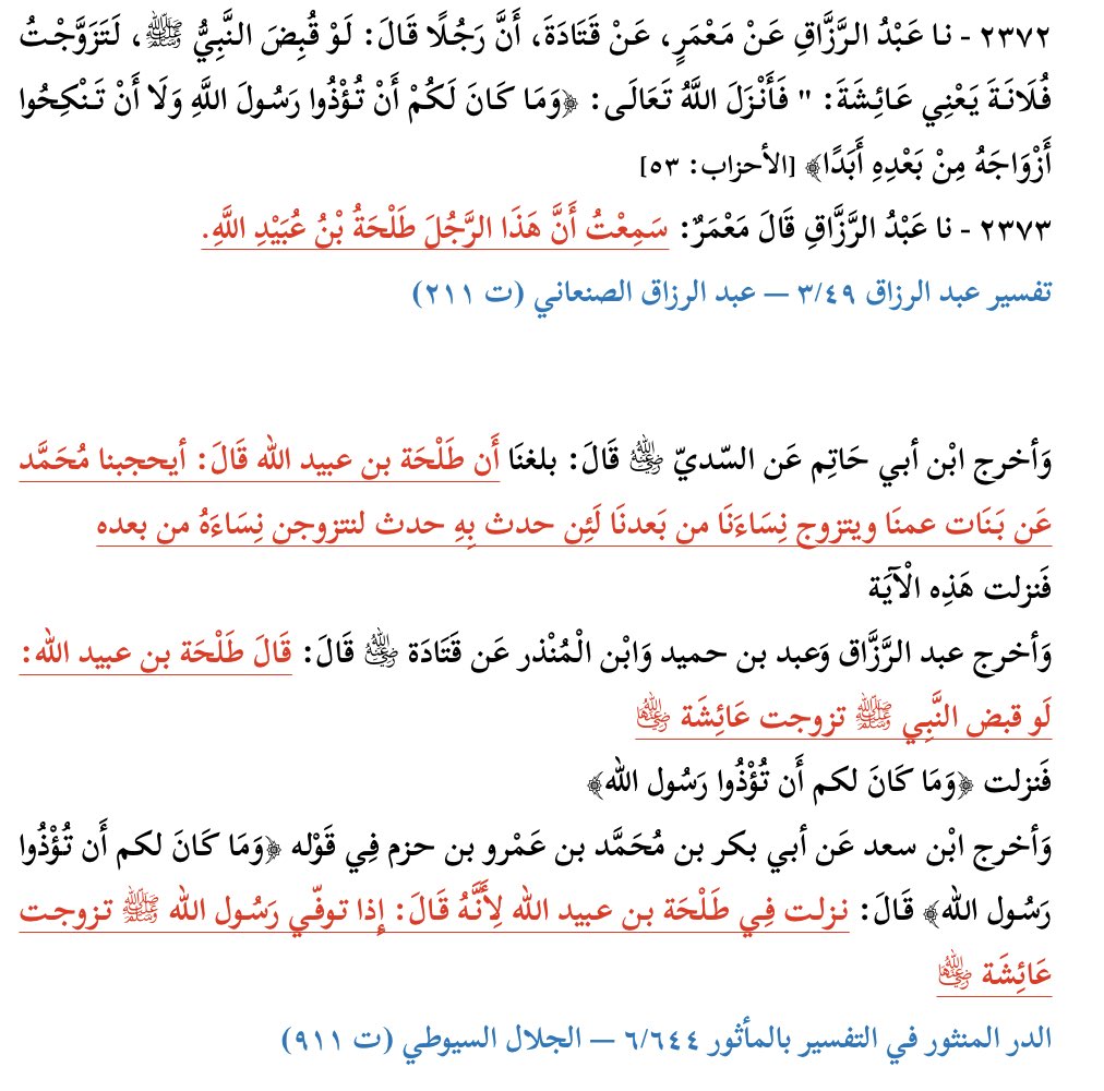 كان طلحة بن عبيد الله من الذين آذوا النبي ﷺ في حياته فأنزل الله في شأنه هذه الآية، ثم انضم إلى أهل العقبة وفشلوا في قتل رسول الله ﷺ، ولمّا بُويع علي (ع) وآيس من حصول الدنيا من جهة الأمير (ع)، نكث بيعته وخرج على إمام زمانه.